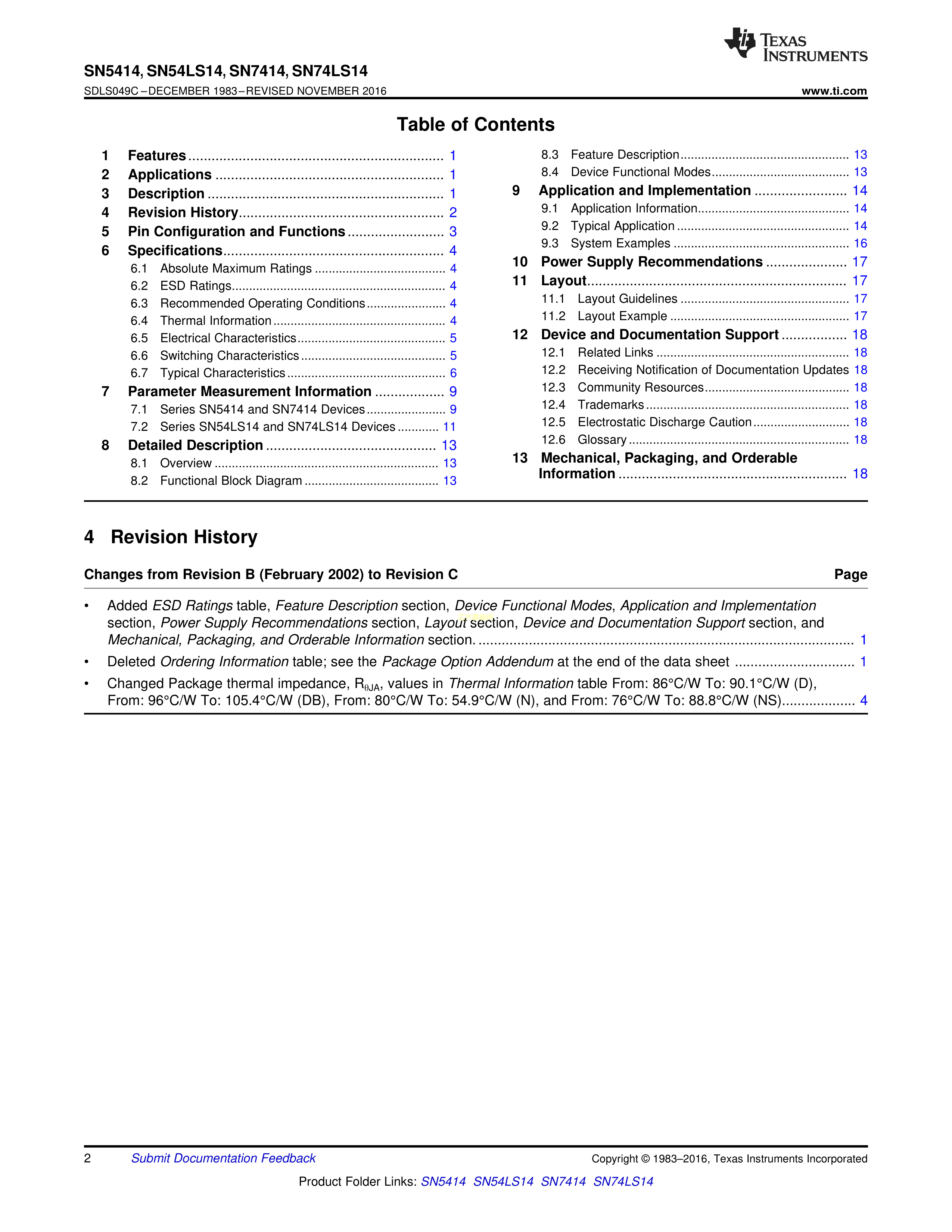 SN74LS14N数据手册PDIP-14封装TI(德州仪器)PDF规格书,中英文下载