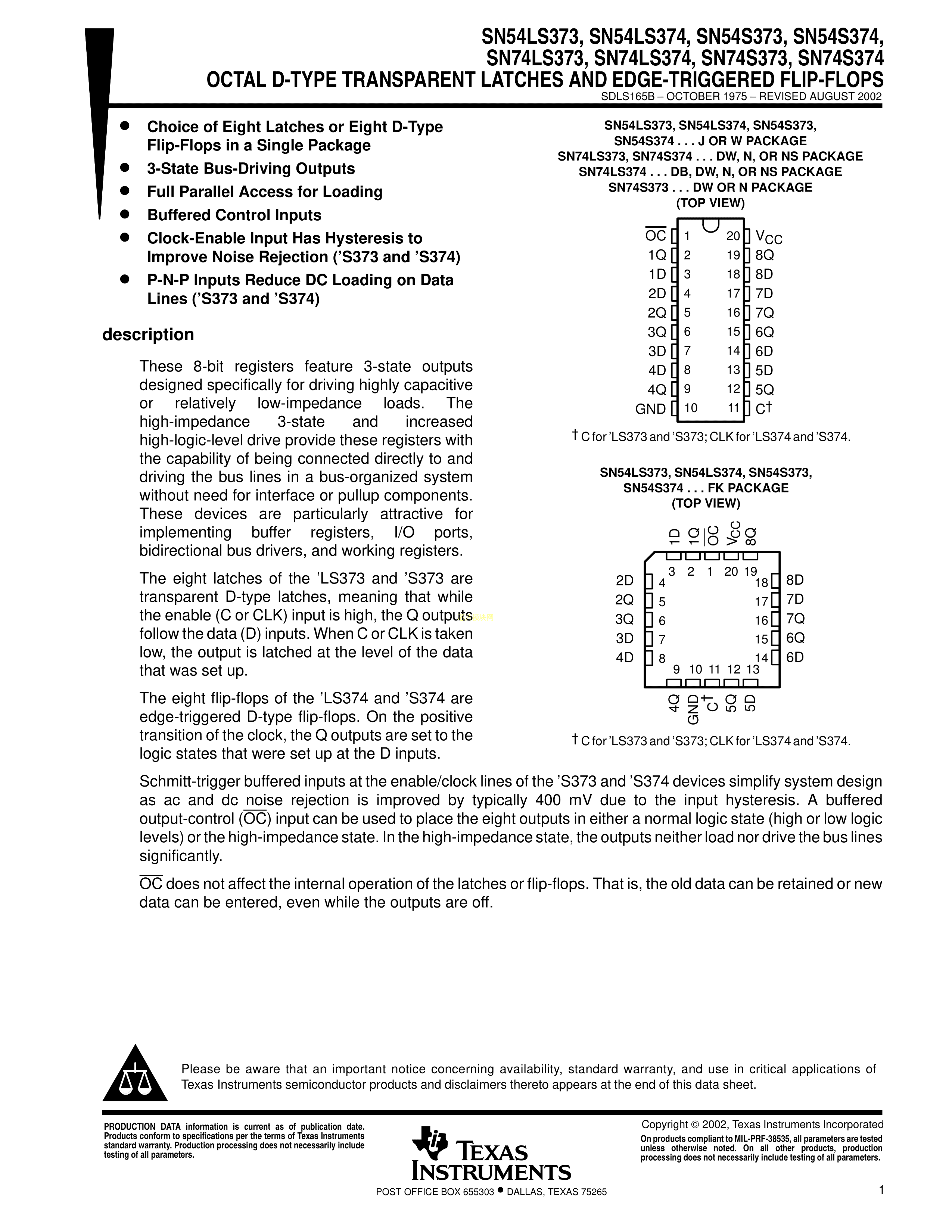 SN74LS373N数据手册DIP-20封装TI(德州仪器)PDF规格书,中英文下载