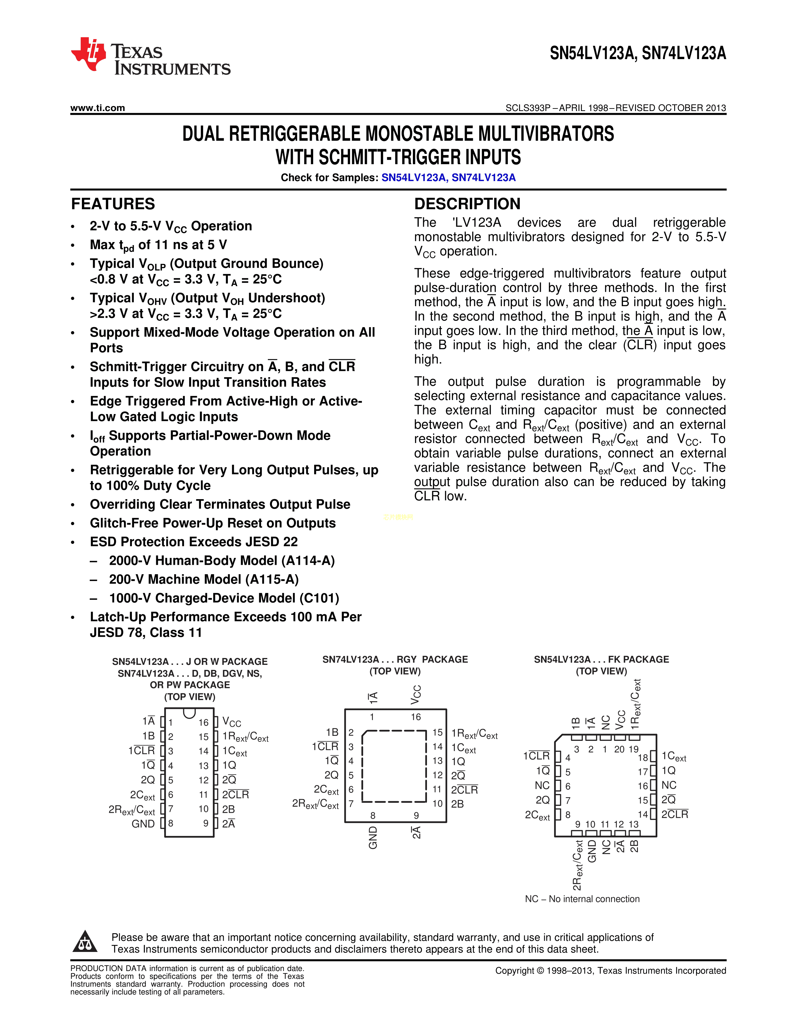 SN74LV123APWRG4数据手册TSSOP-16_44mm_065P封装TI(德州仪器)PDF