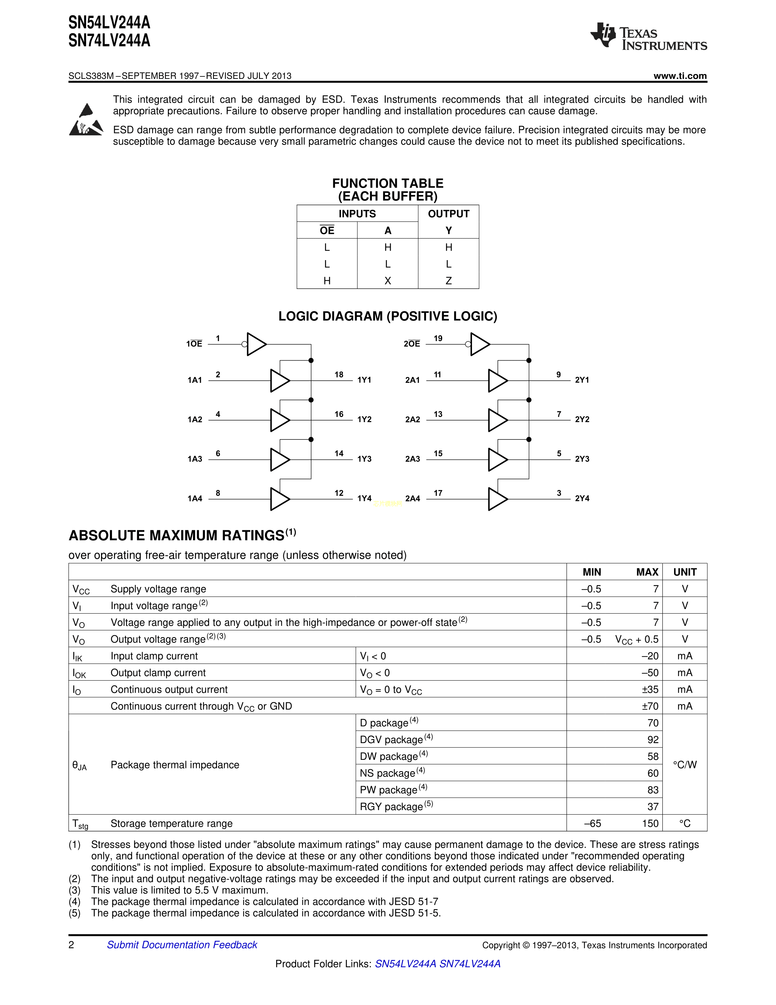 SN74LV244APWRG4数据手册TSSOP-20封装TI(德州仪器)PDF规格书,中英文下载