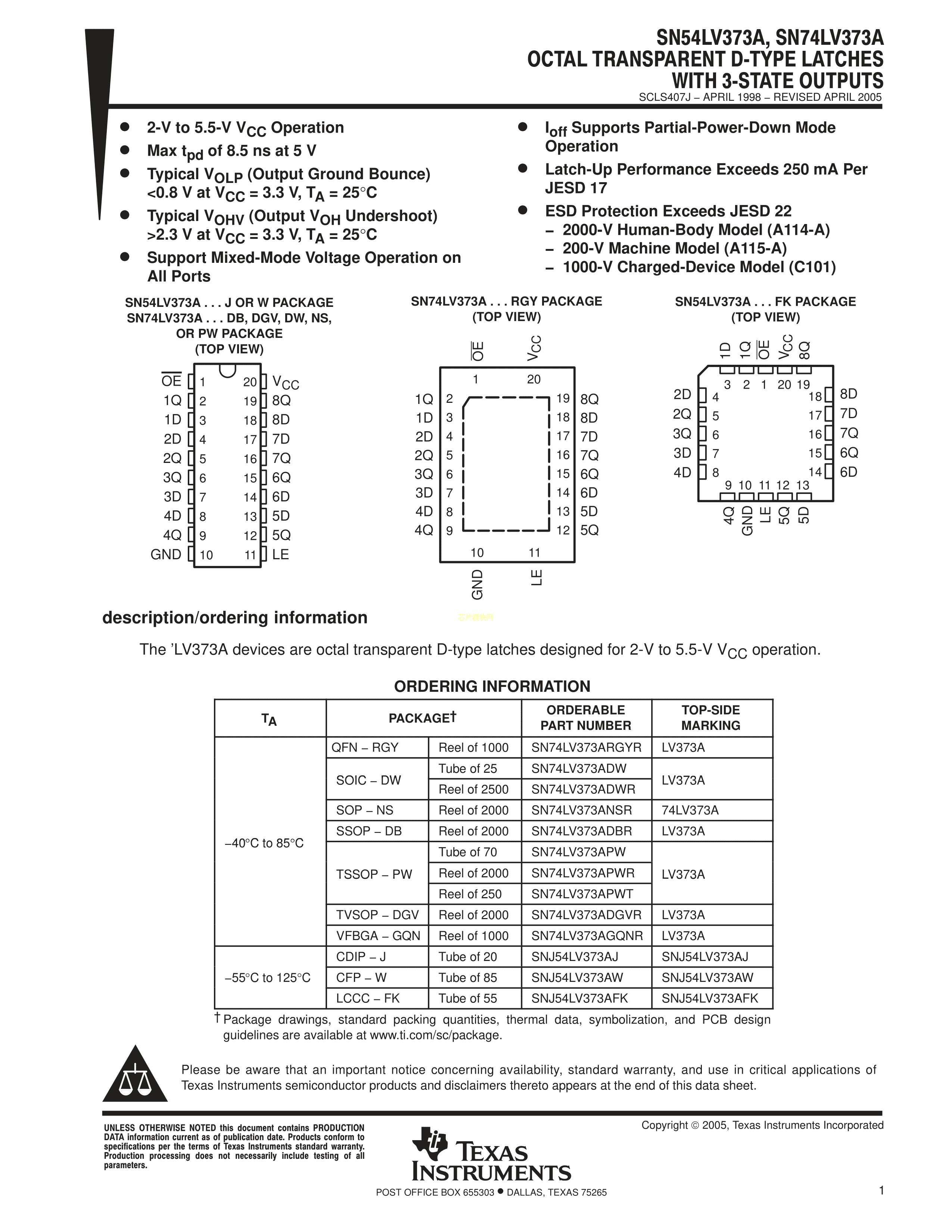 SN74LV373APWR数据手册TSSOP-20封装TI(德州仪器)PDF规格书,中英文下载