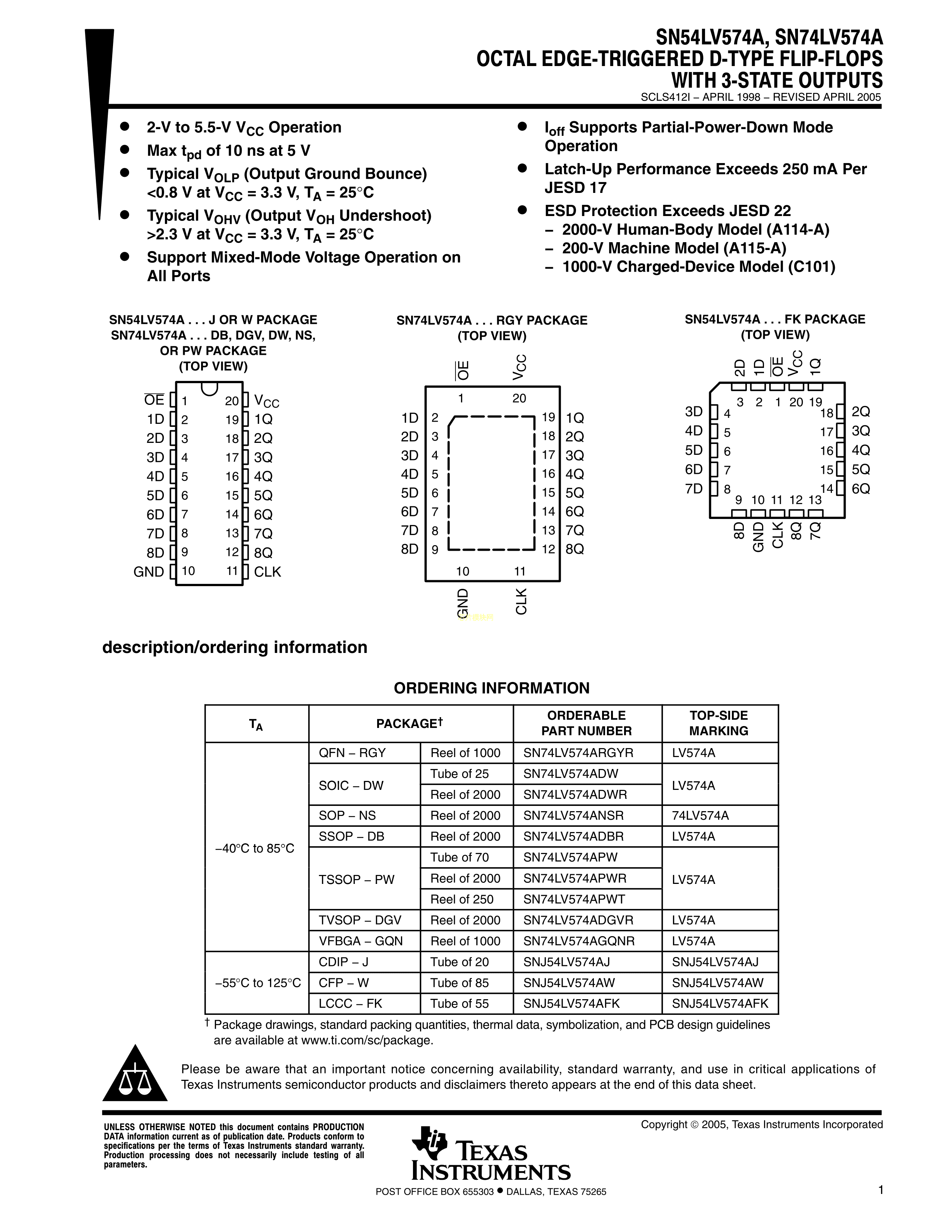 SN74LV574APW数据手册TSSOP-20封装TI(德州仪器)PDF规格书,中英文下载