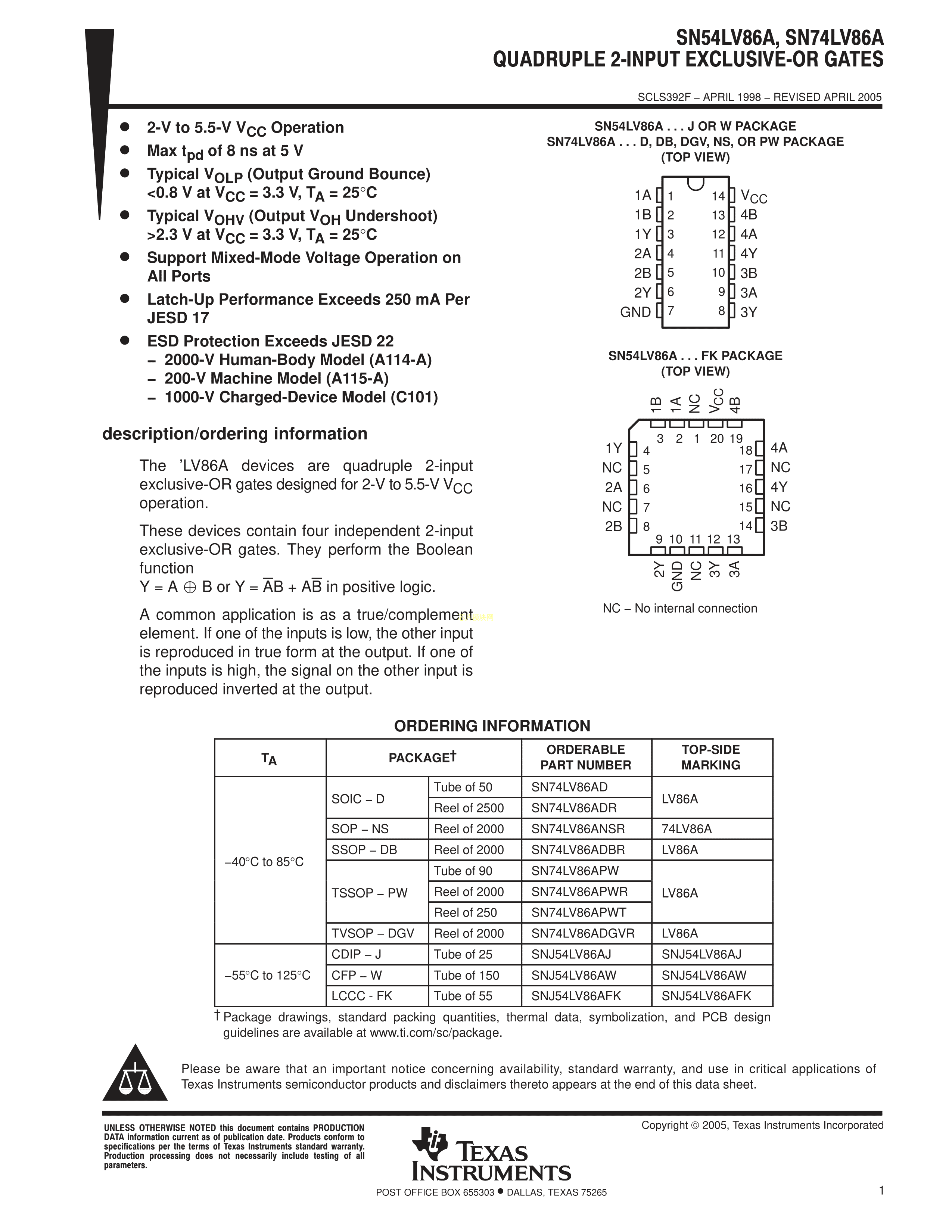 SN74LV86ADR数据手册SOIC-14封装TI(德州仪器)PDF规格书,中英文下载