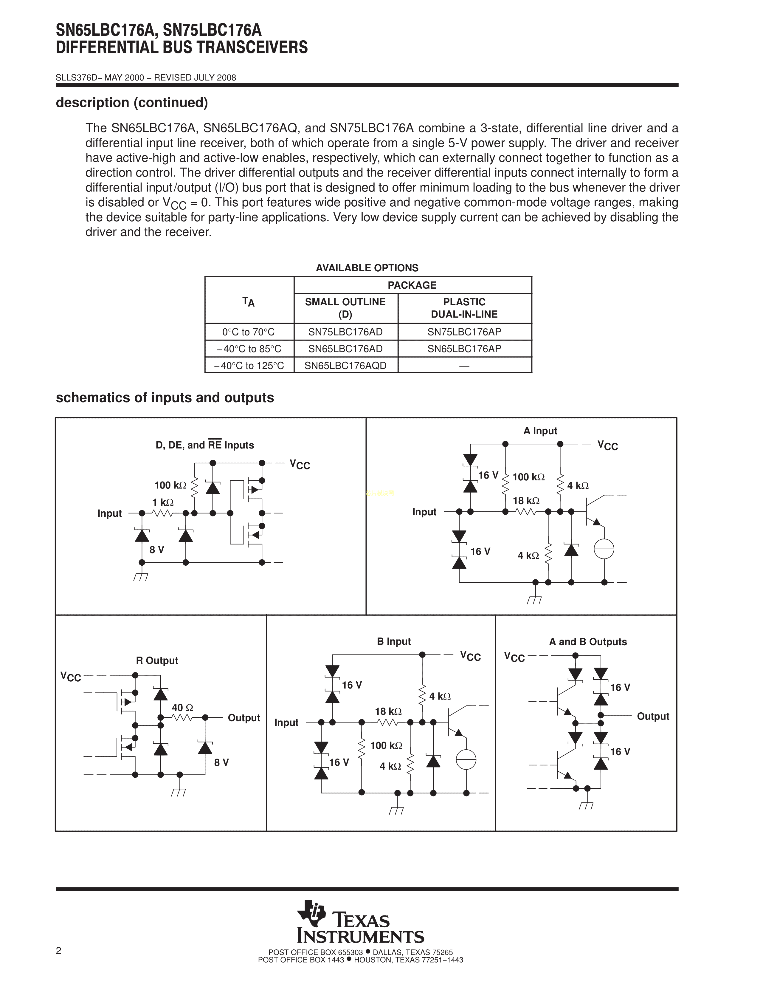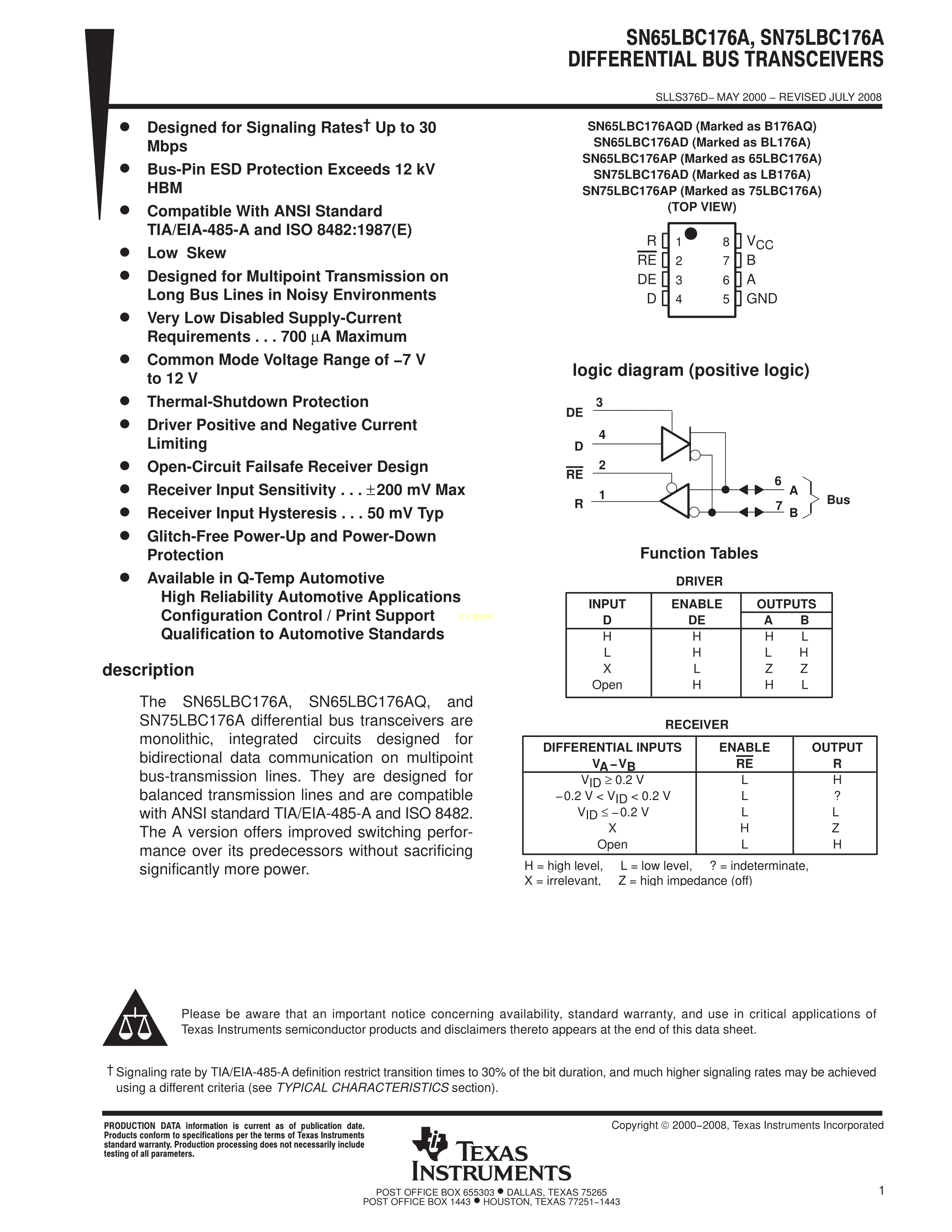 SN75LBC176ADR数据手册SOIC-8_150mil封装TI(德州仪器)PDF规格书,中英文