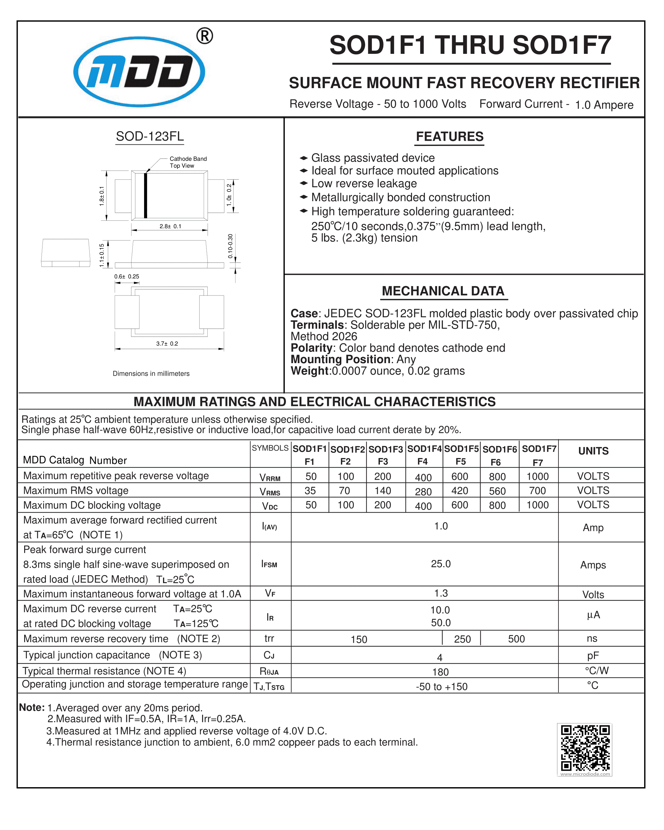 SOD1F4 F4数据手册SOD-123F封装MDDPDF规格书,中英文下载
