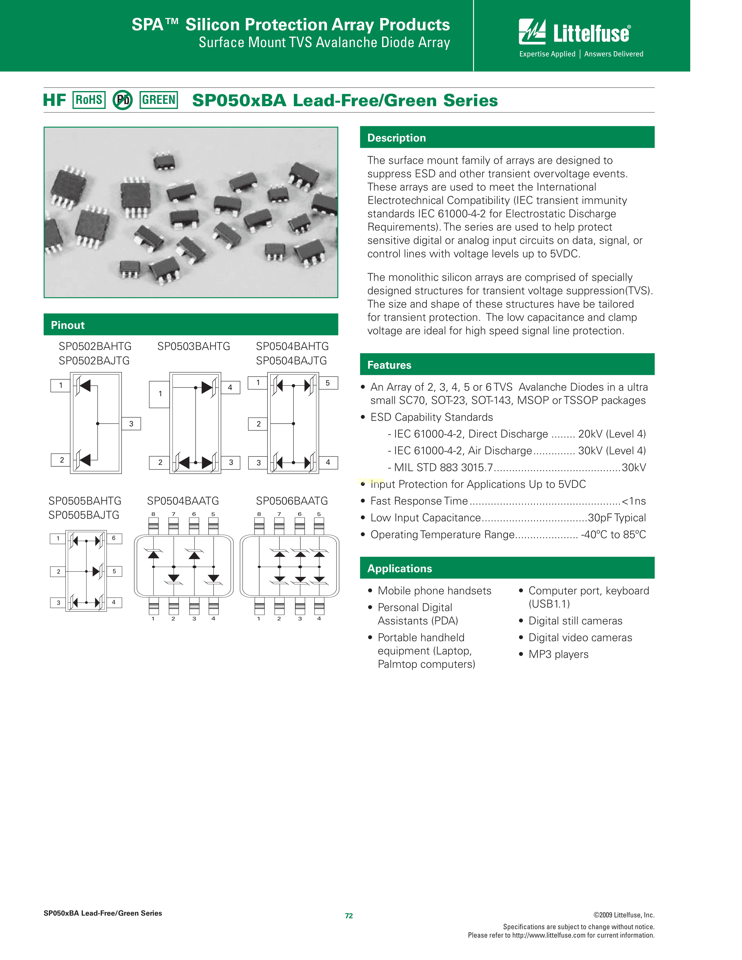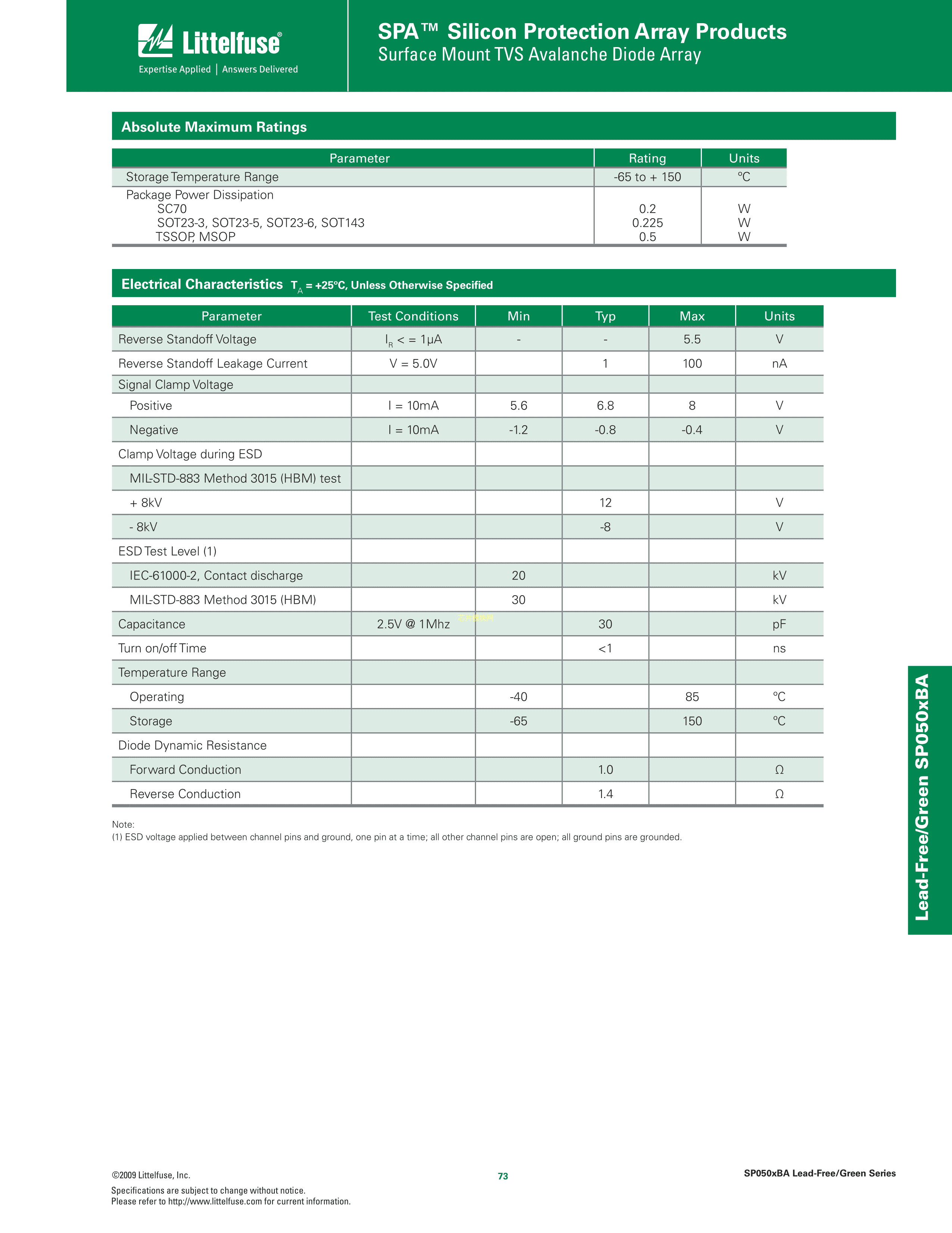 SP0504BAHTG数据手册SOT-23-5封装Littelfuse(美国力特)PDF规格书,中英文下载