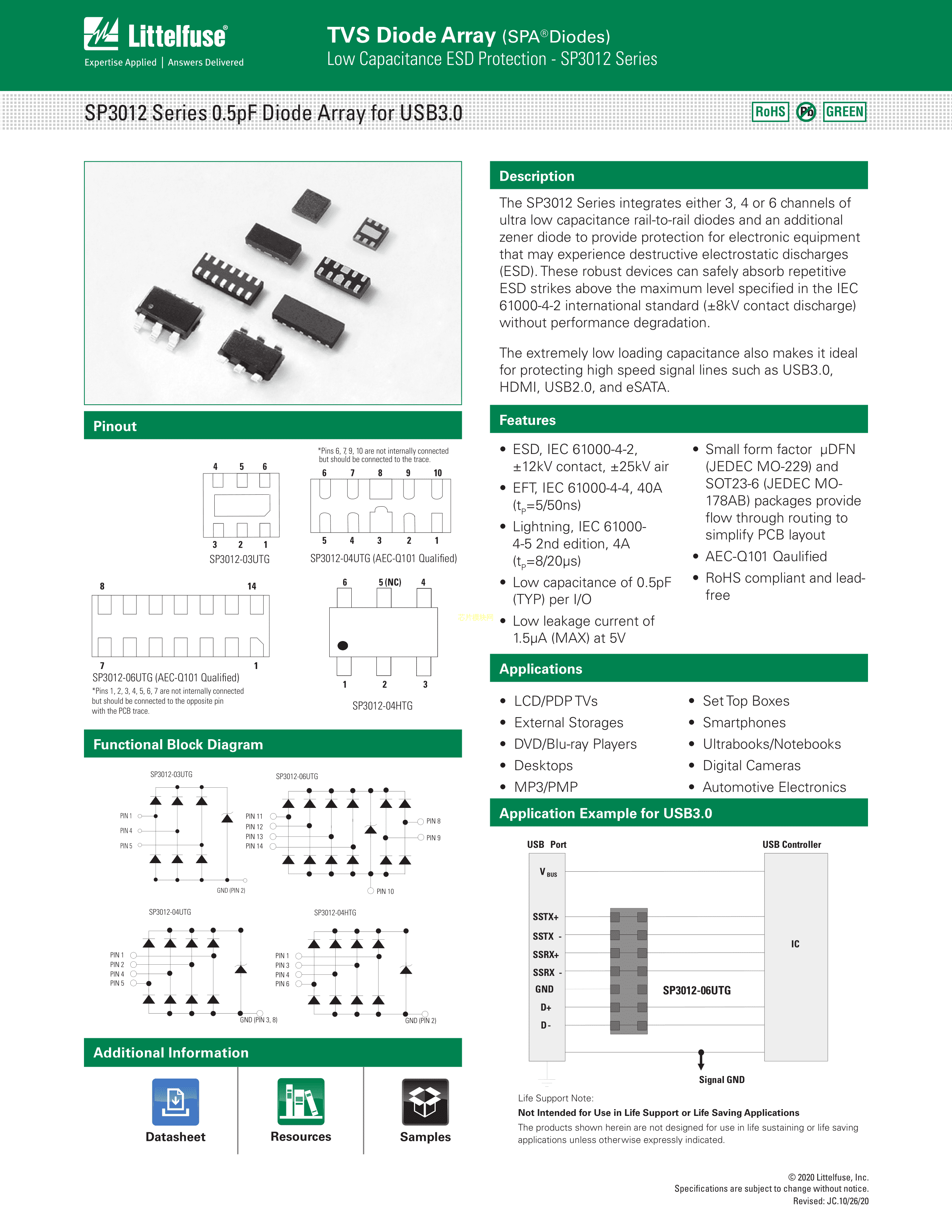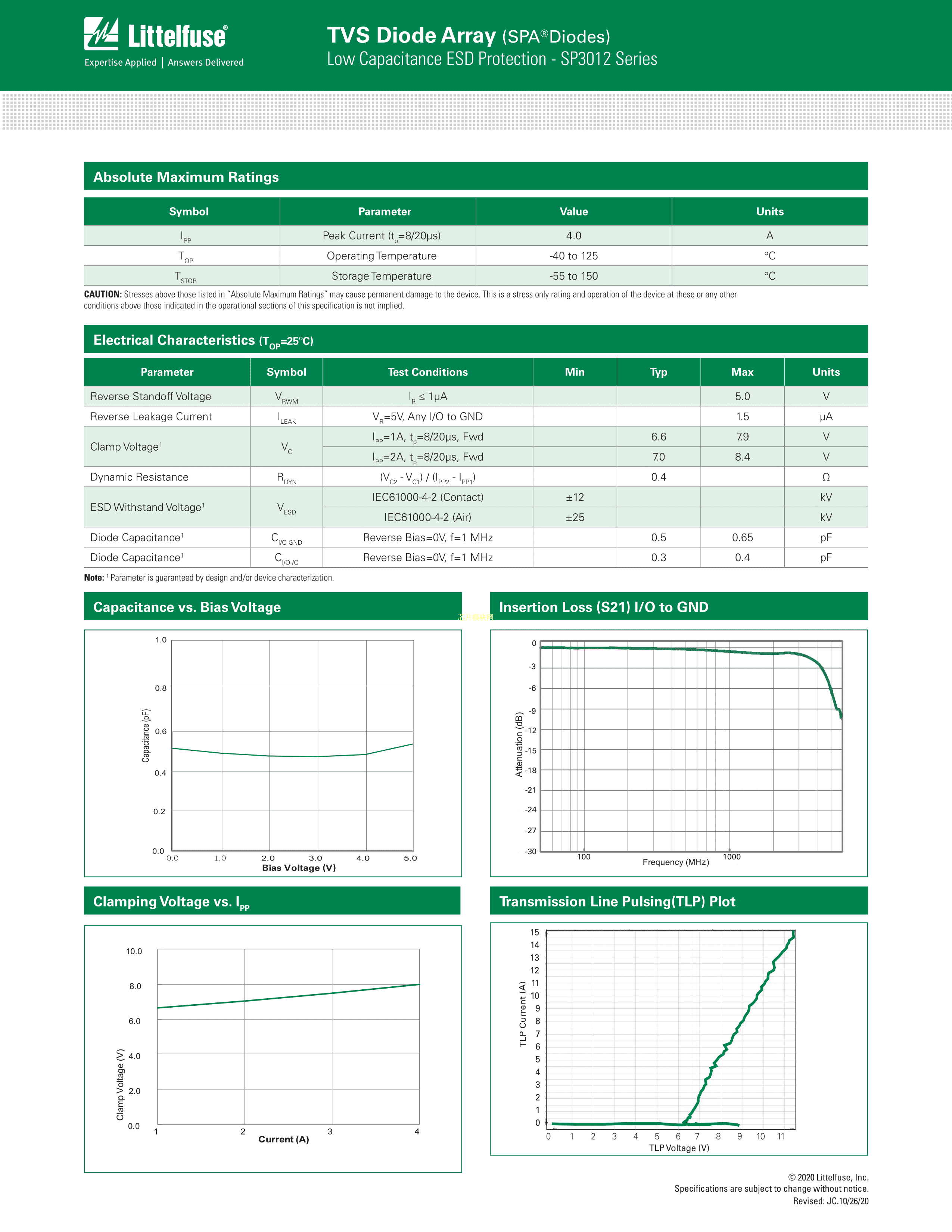 SP3012-04HTG数据手册SOT-23-6封装Littelfuse(美国力特)PDF规格书,中英文下载