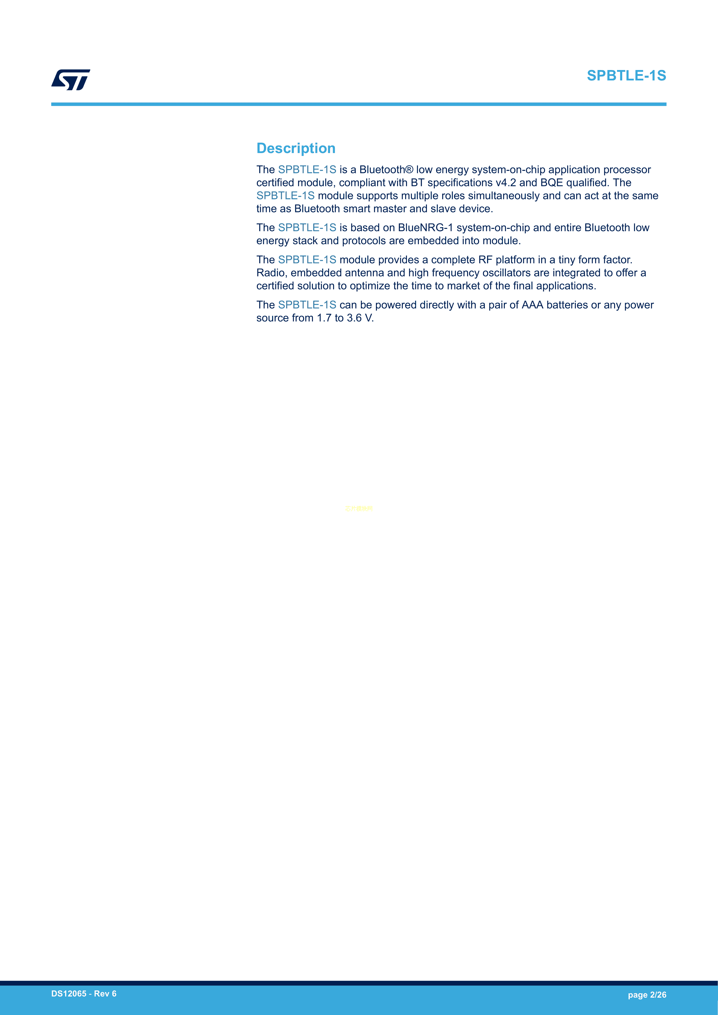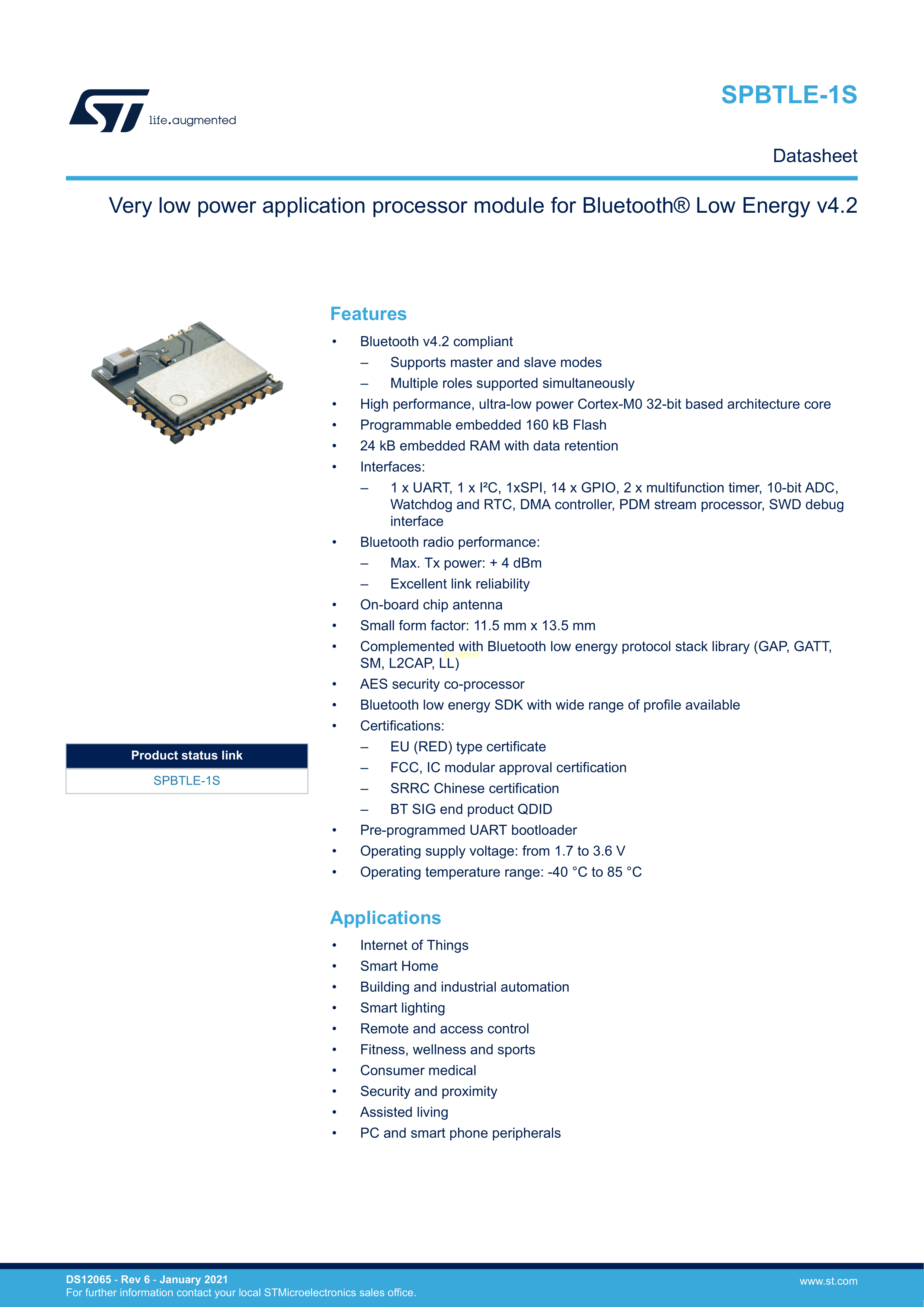 SPBTLE-1S数据手册Module封装ST(意法半导体)PDF规格书,中英文下载