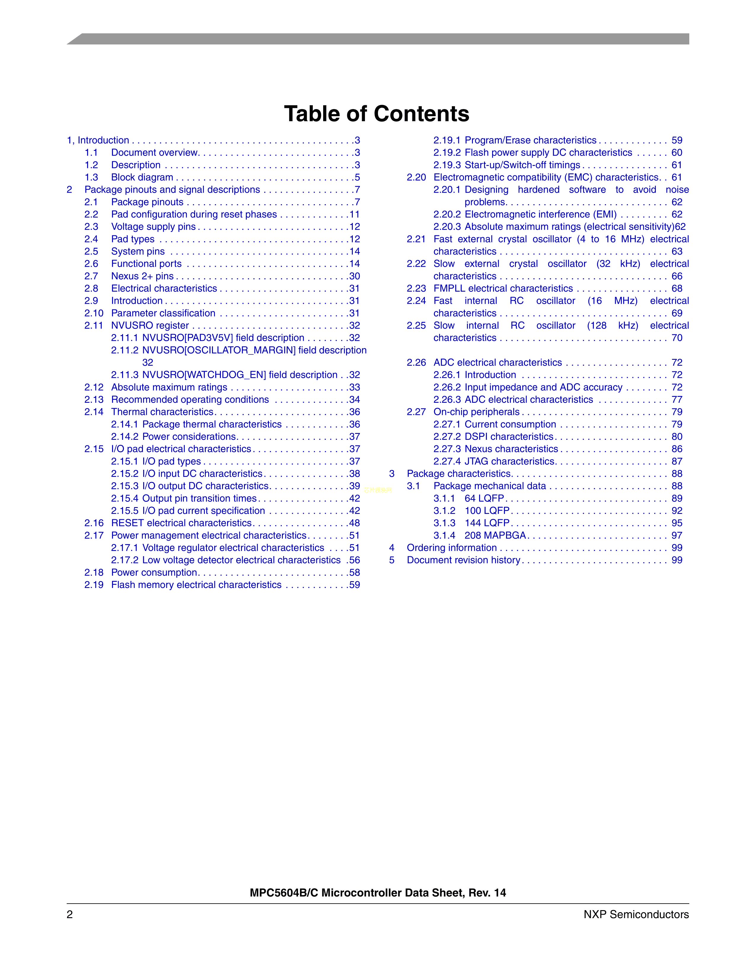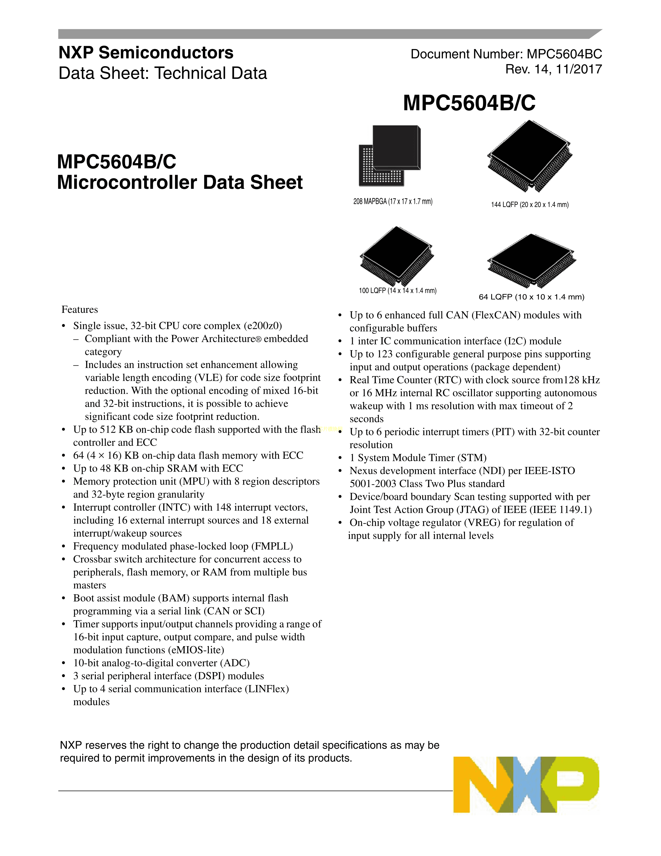 SPC5604BAVLL6R数据手册LQFP-100(14x14)封装NXP(恩智浦)PDF规格书,