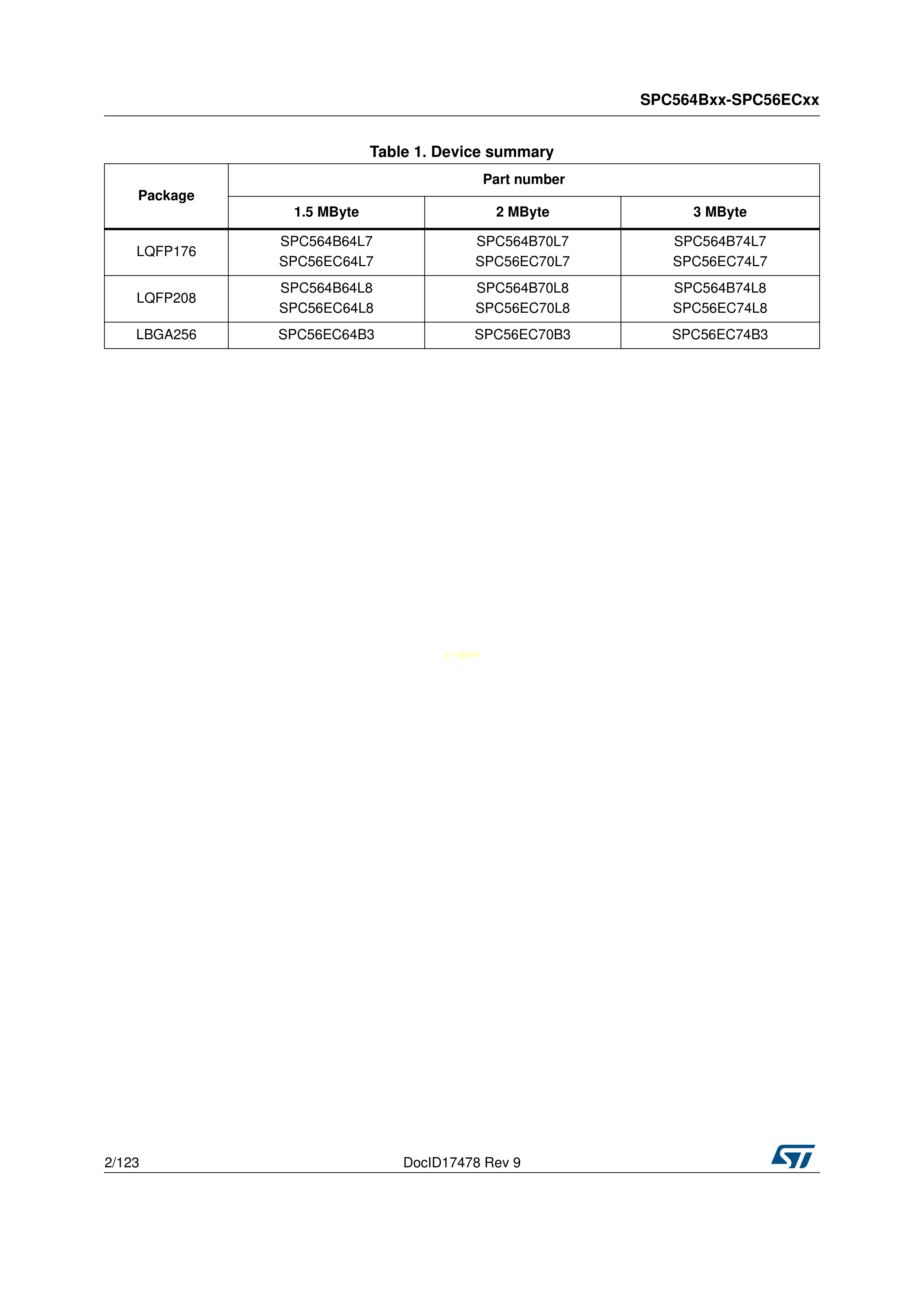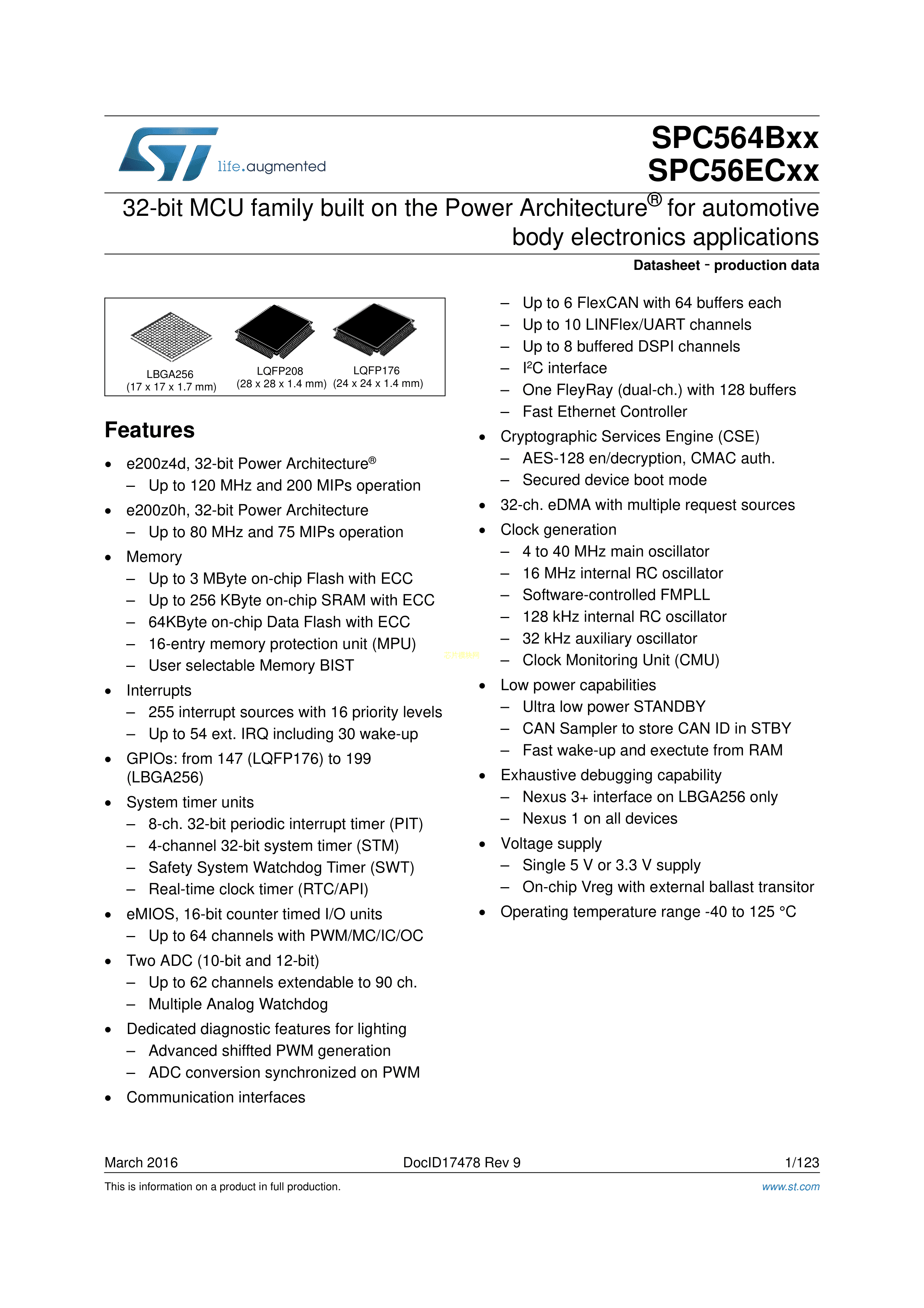 SPC564B64L7C9E0X数据手册LQFP-176(24x24)封装ST(意法半导体)PDF规
