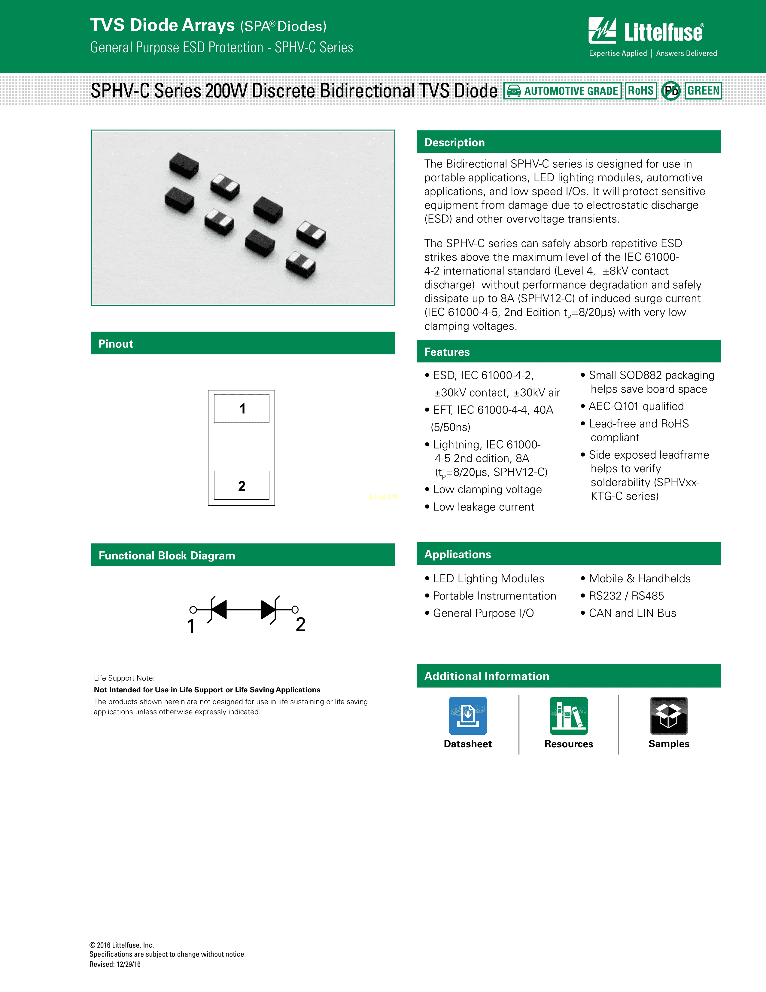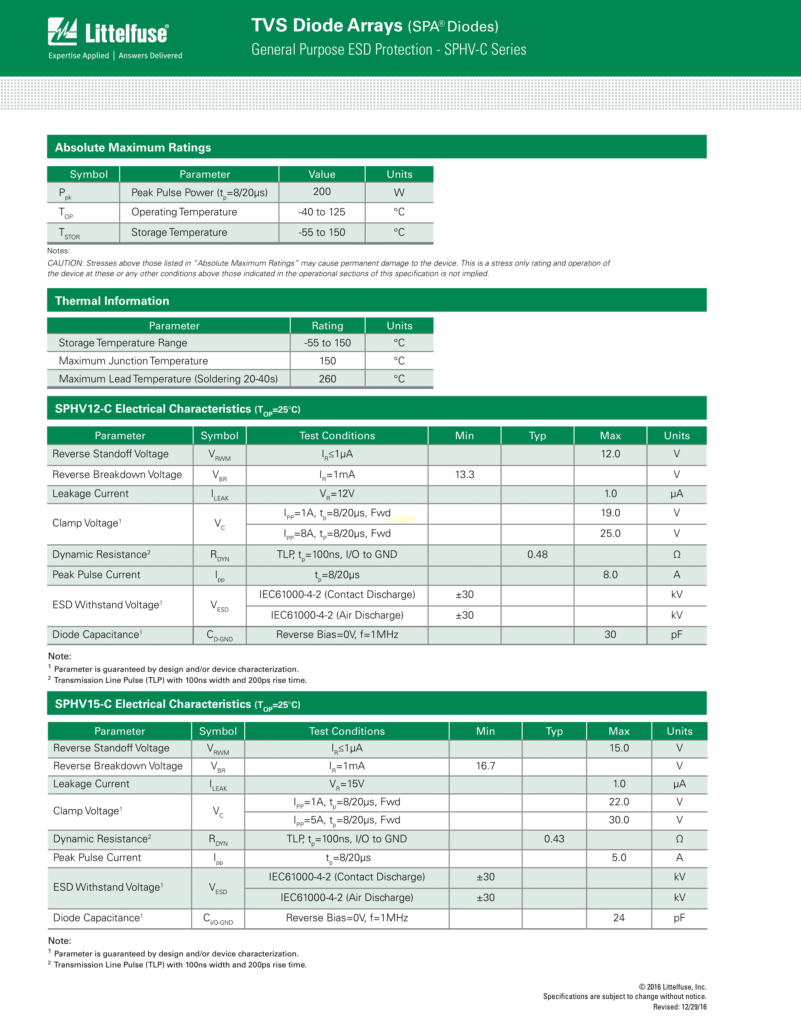 SPHV15-01ETG-C数据手册SOD-882封装Littelfuse(美国力特)PDF规格书,