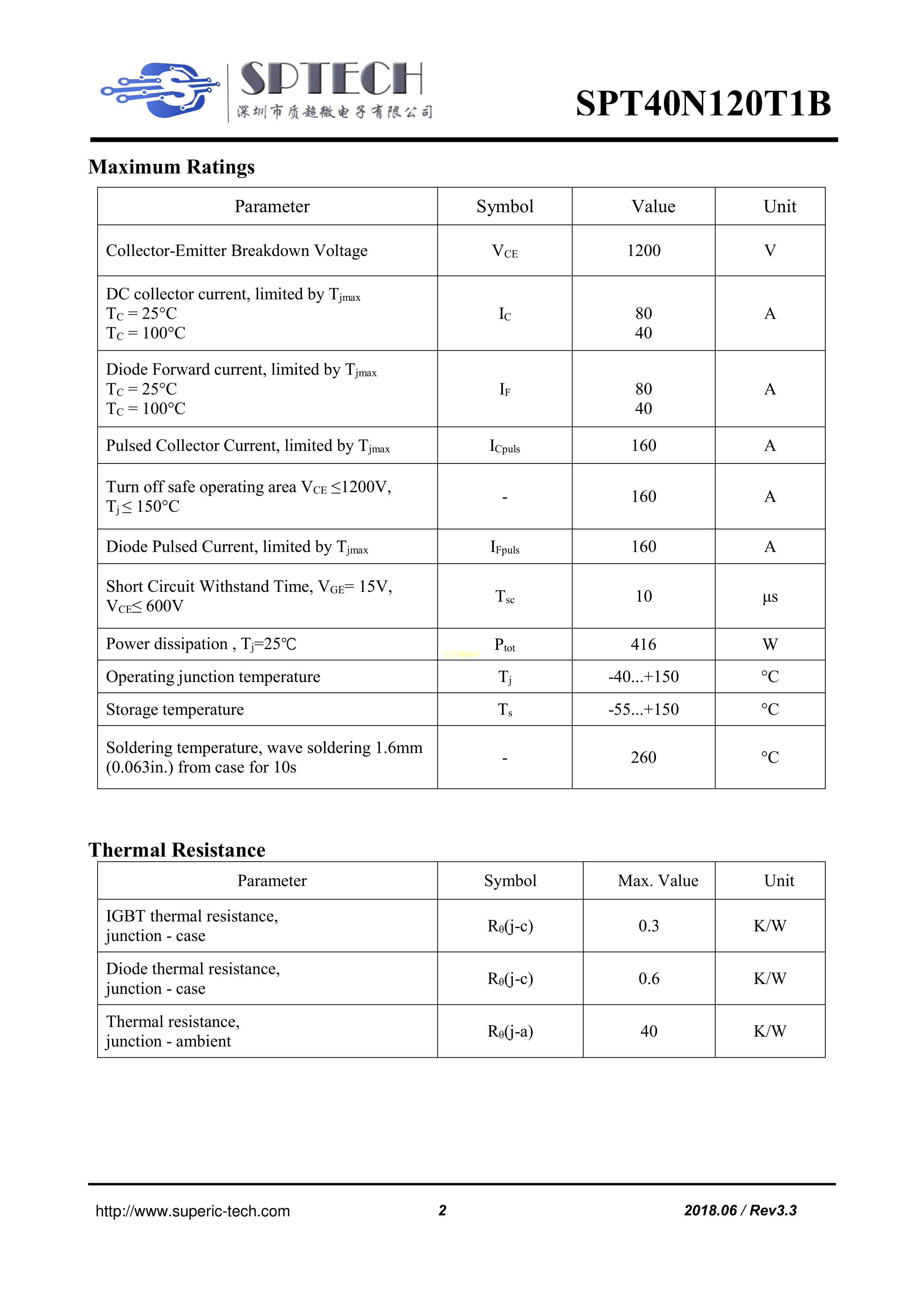 SPT40N120T1B数据手册TO-247封装SPTECH(深圳质超)PDF规格书,中英文下载
