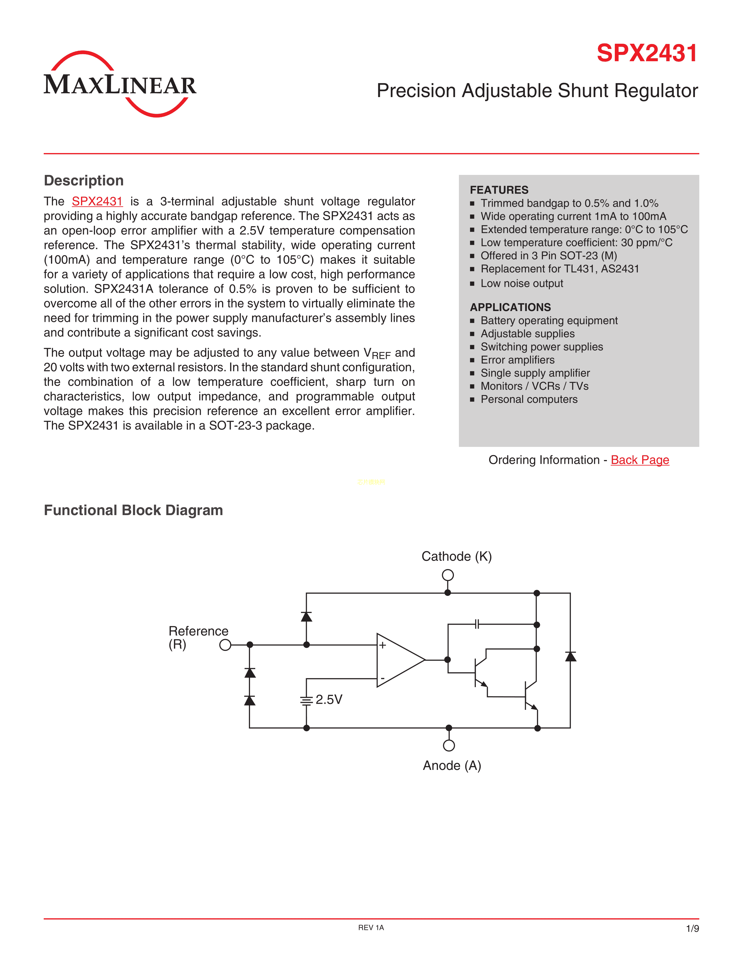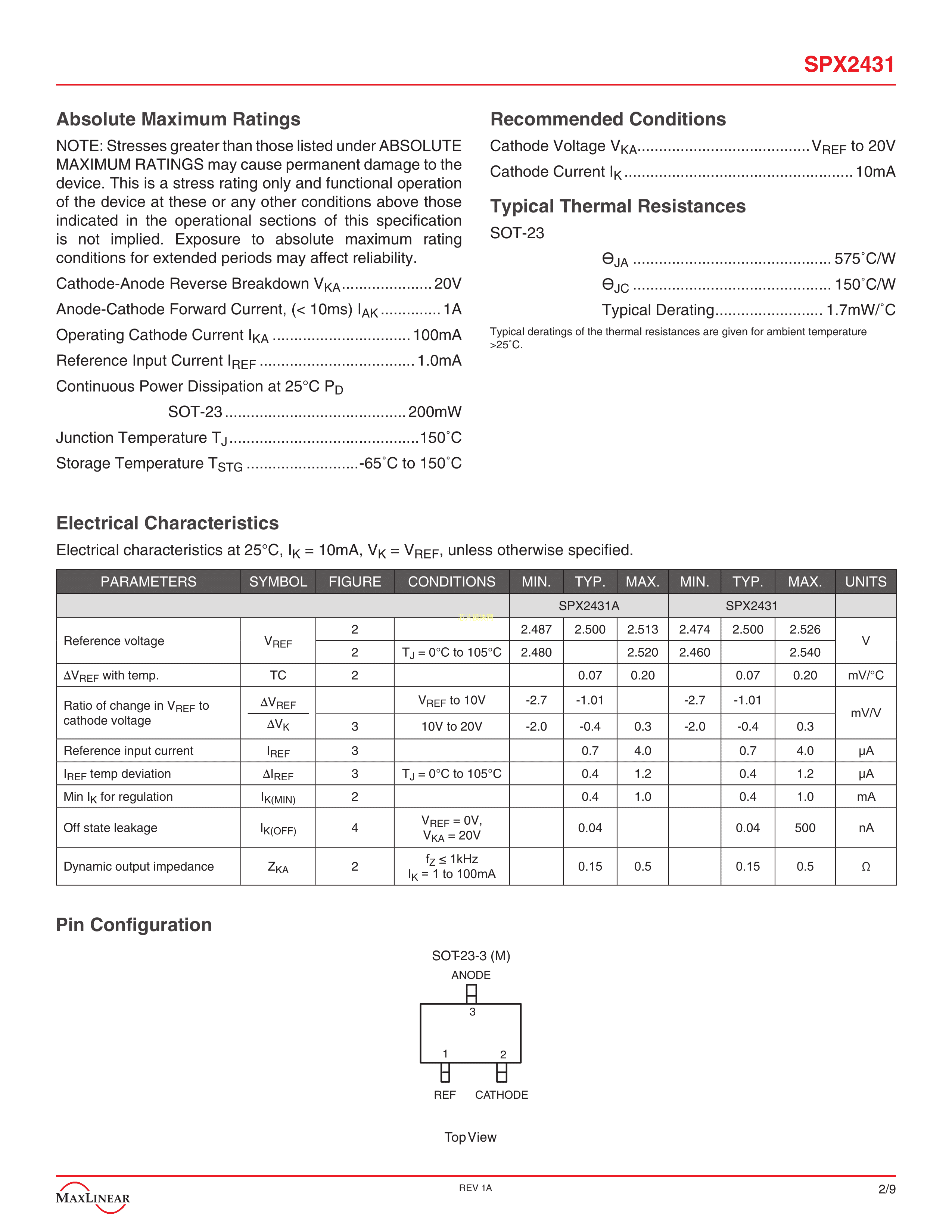 SPX2431M-L-TR数据手册SOT-23-3封装MaxLinearPDF规格书,中英文下载