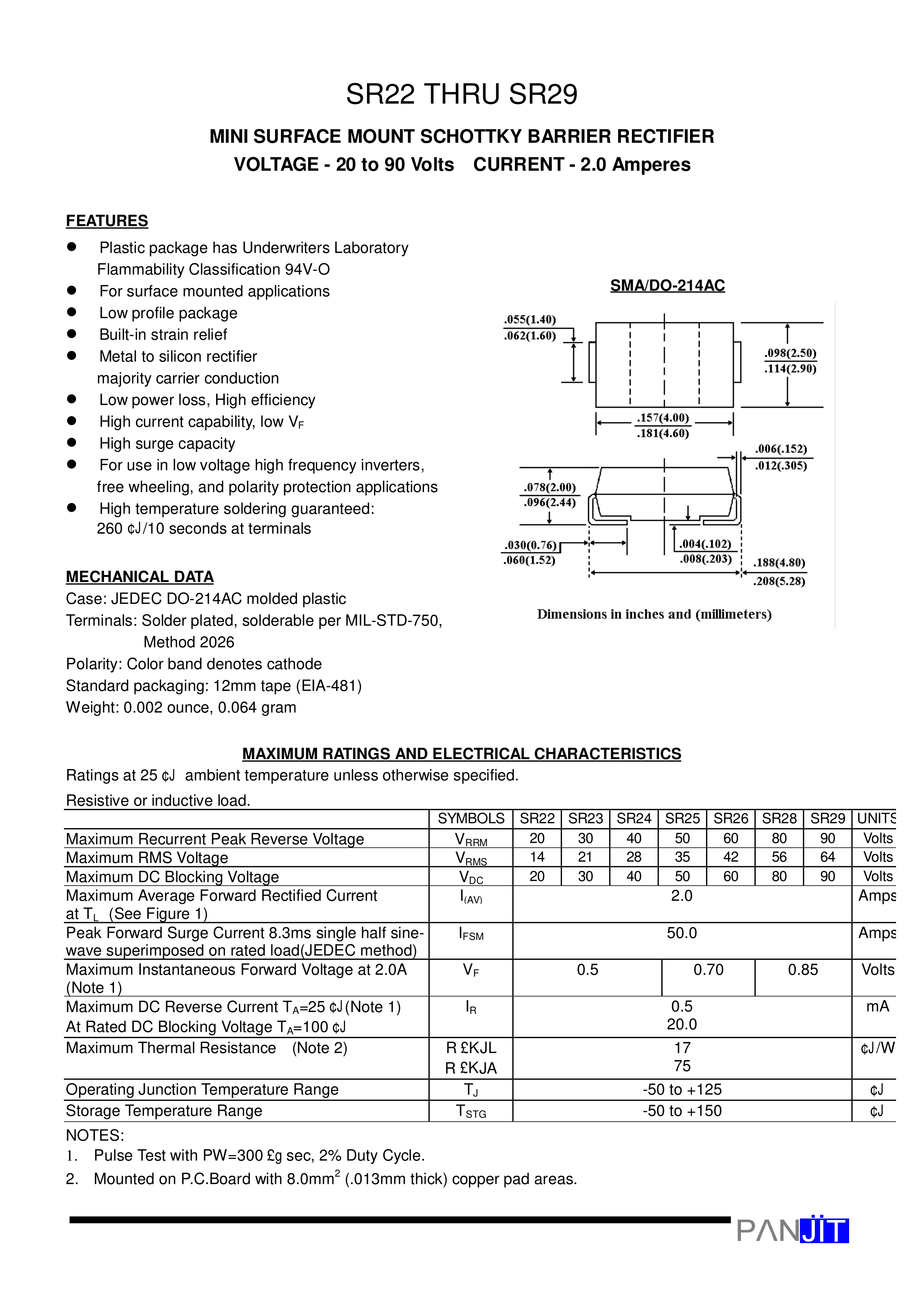 SR26_R1_00001数据手册SMA封装PANJIT(强茂)PDF规格书,中英文下载
