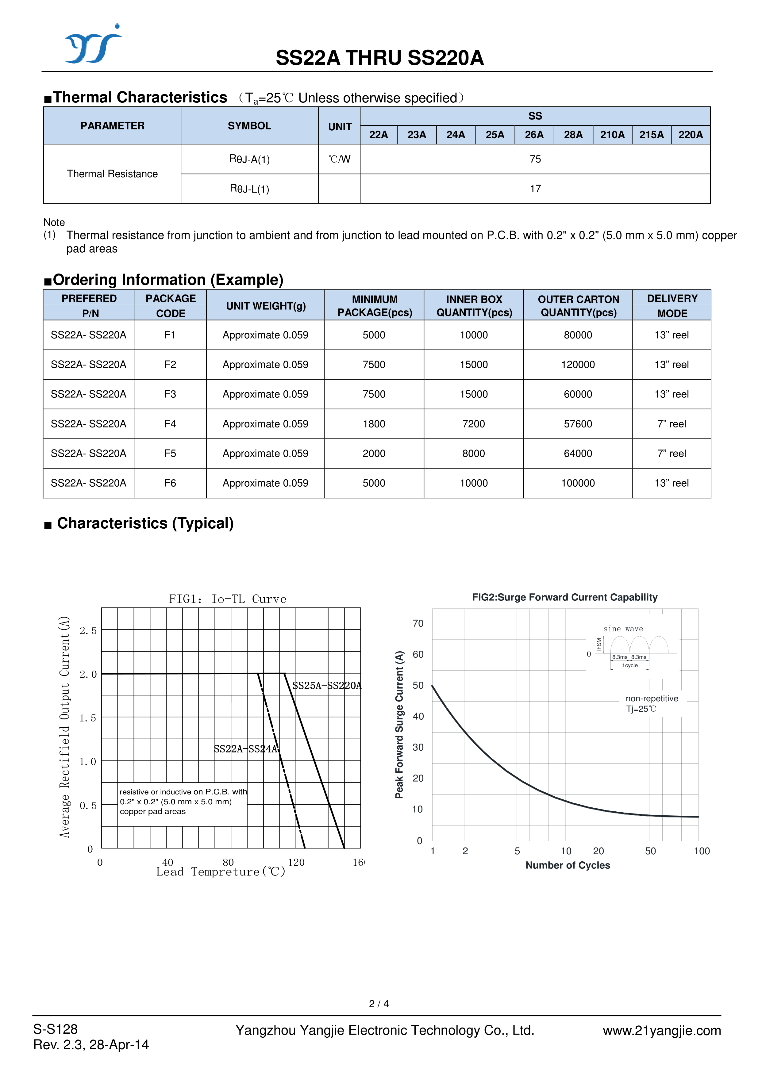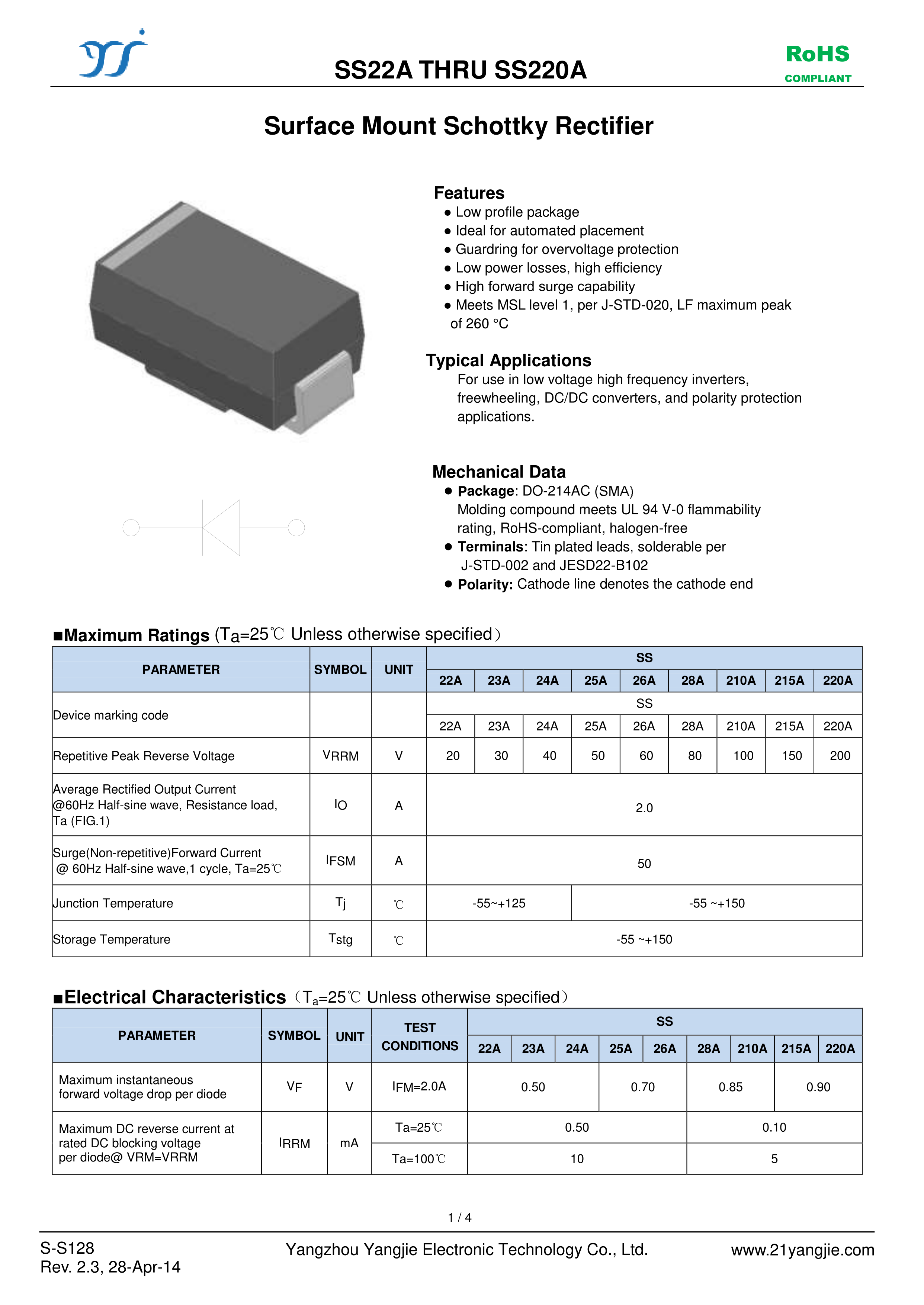 SS26A数据手册SMA封装YANGJIE(扬杰)PDF规格书,中英文下载