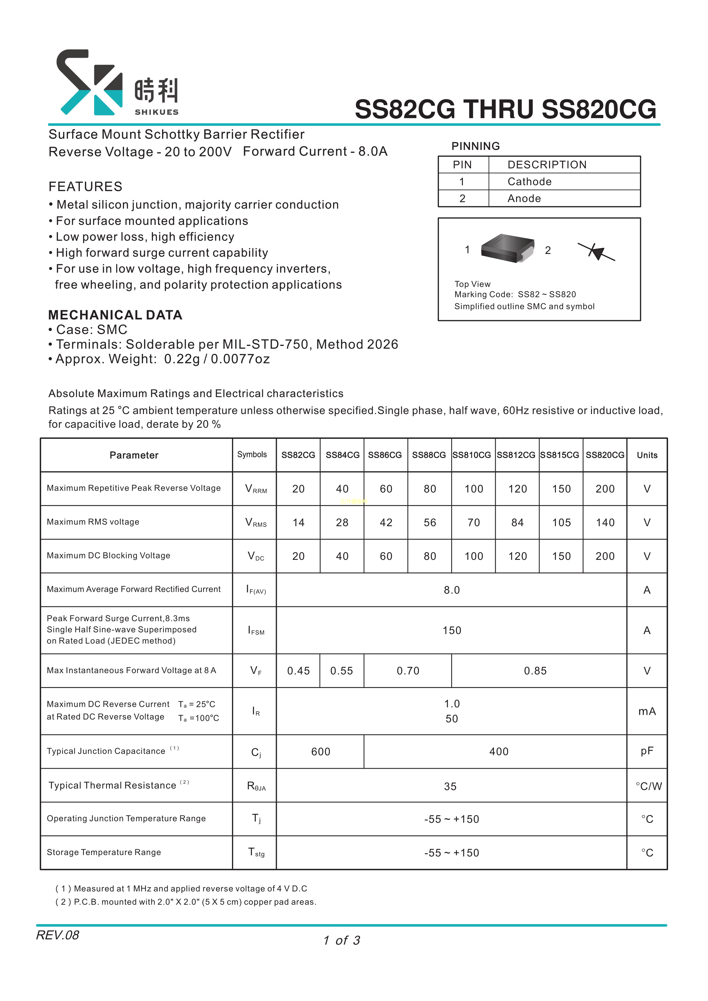 SS810CG数据手册SMC封装SHIKUES(时科)PDF规格书,中英文下载