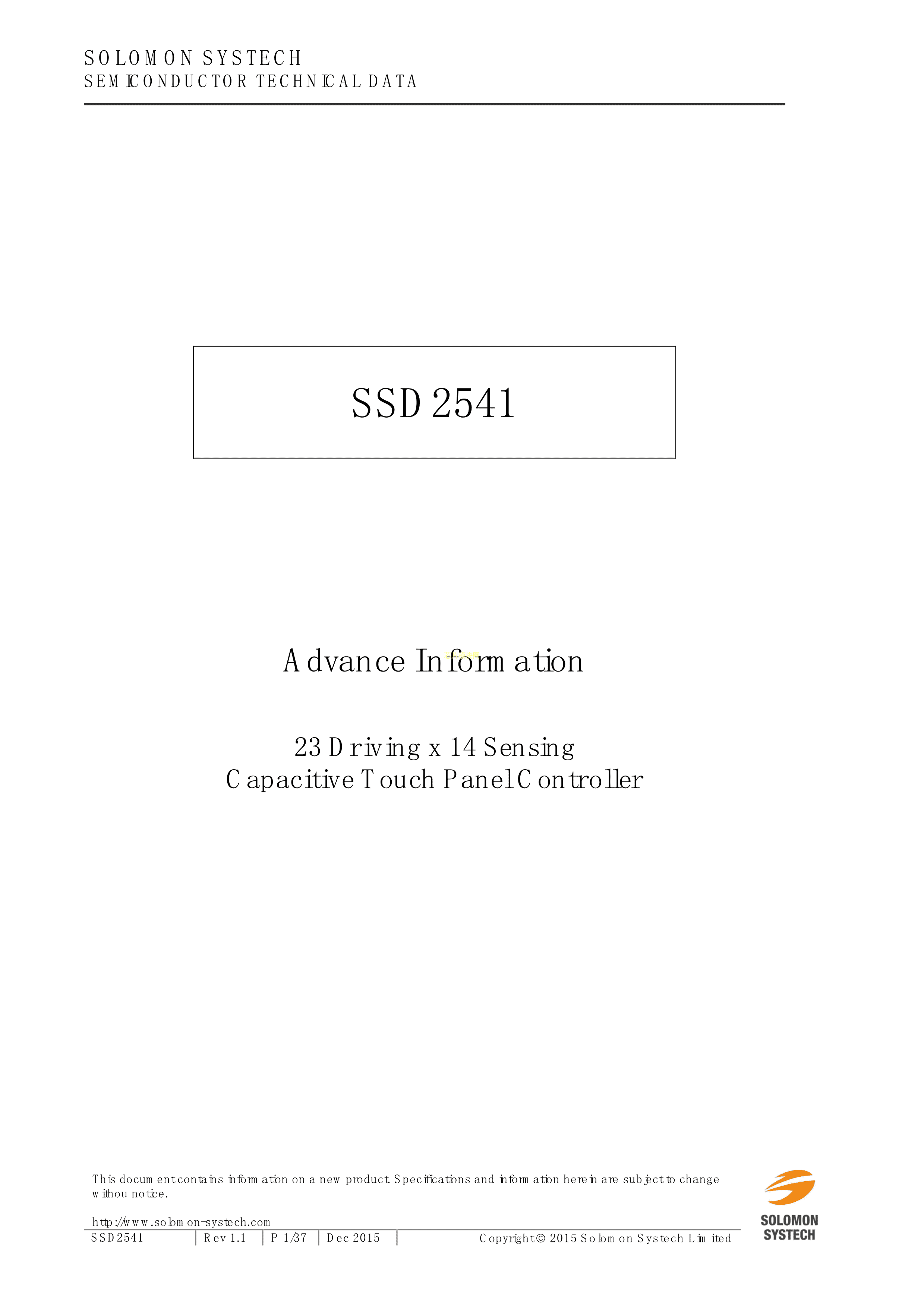 SSD2541QN5数据手册QFN-48封装SOLOMON(晶门科技)PDF规格书,中英文下载