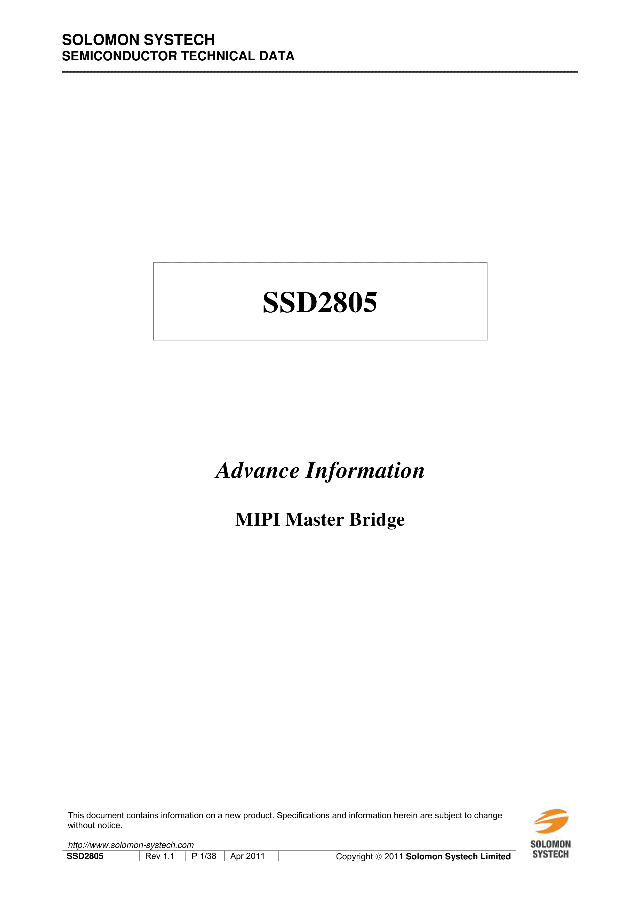 SSD2805CG39R数据手册TFBGA-64封装SOLOMON(晶门科技)PDF规格书,中英文下