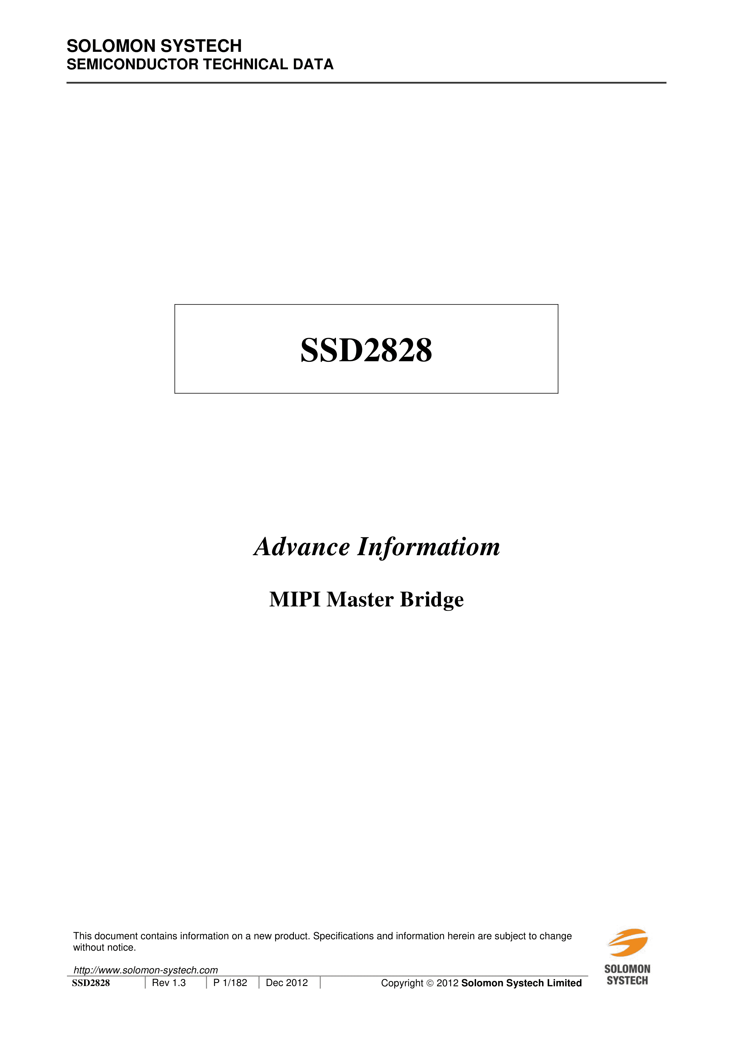 SSD2828QL9数据手册LQFP-128封装SOLOMON(晶门科技)PDF规格书,中英文下载