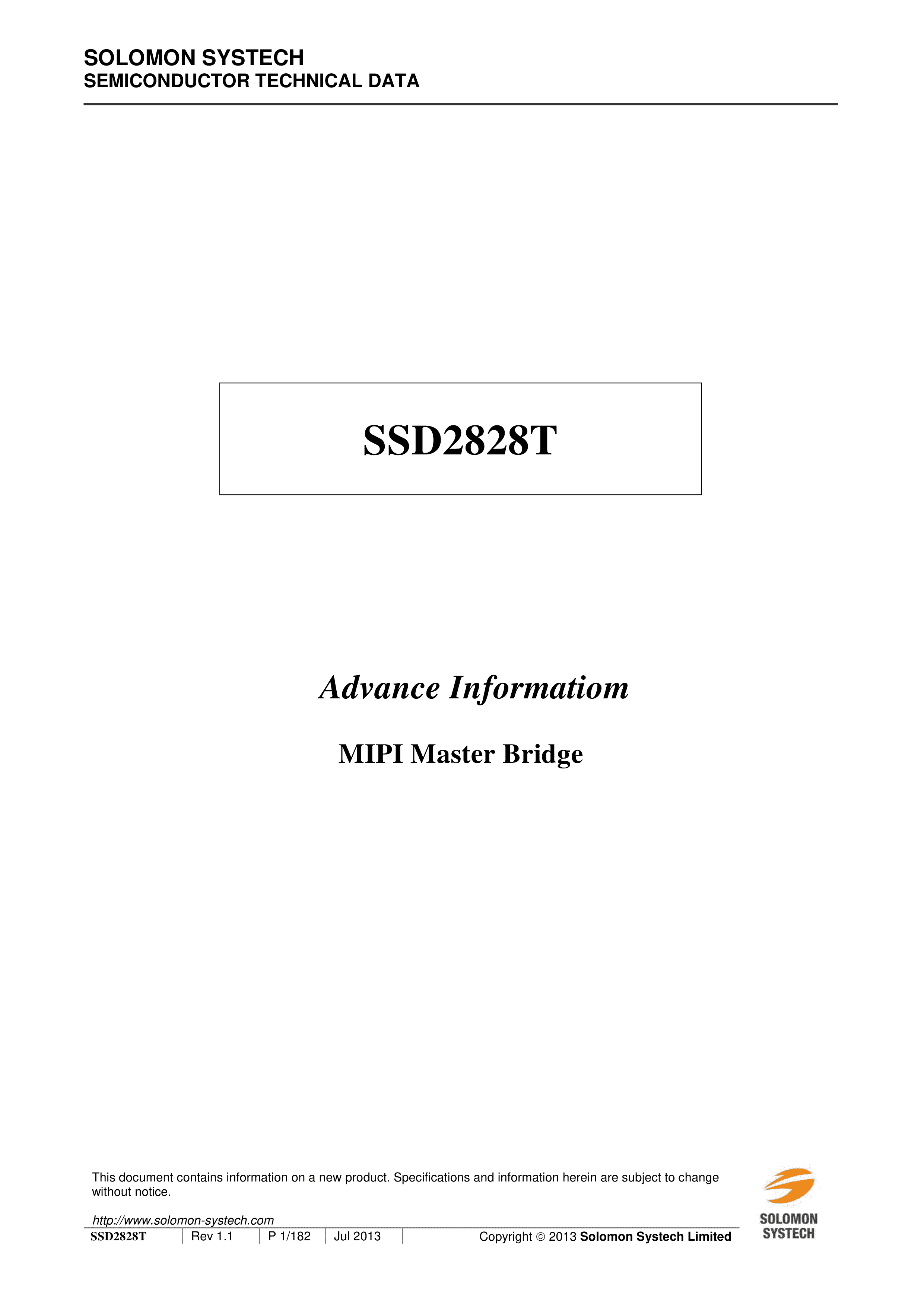 SSD2828TQL9数据手册LQFP-128封装SOLOMON(晶门科技)PDF规格书,中英文下载
