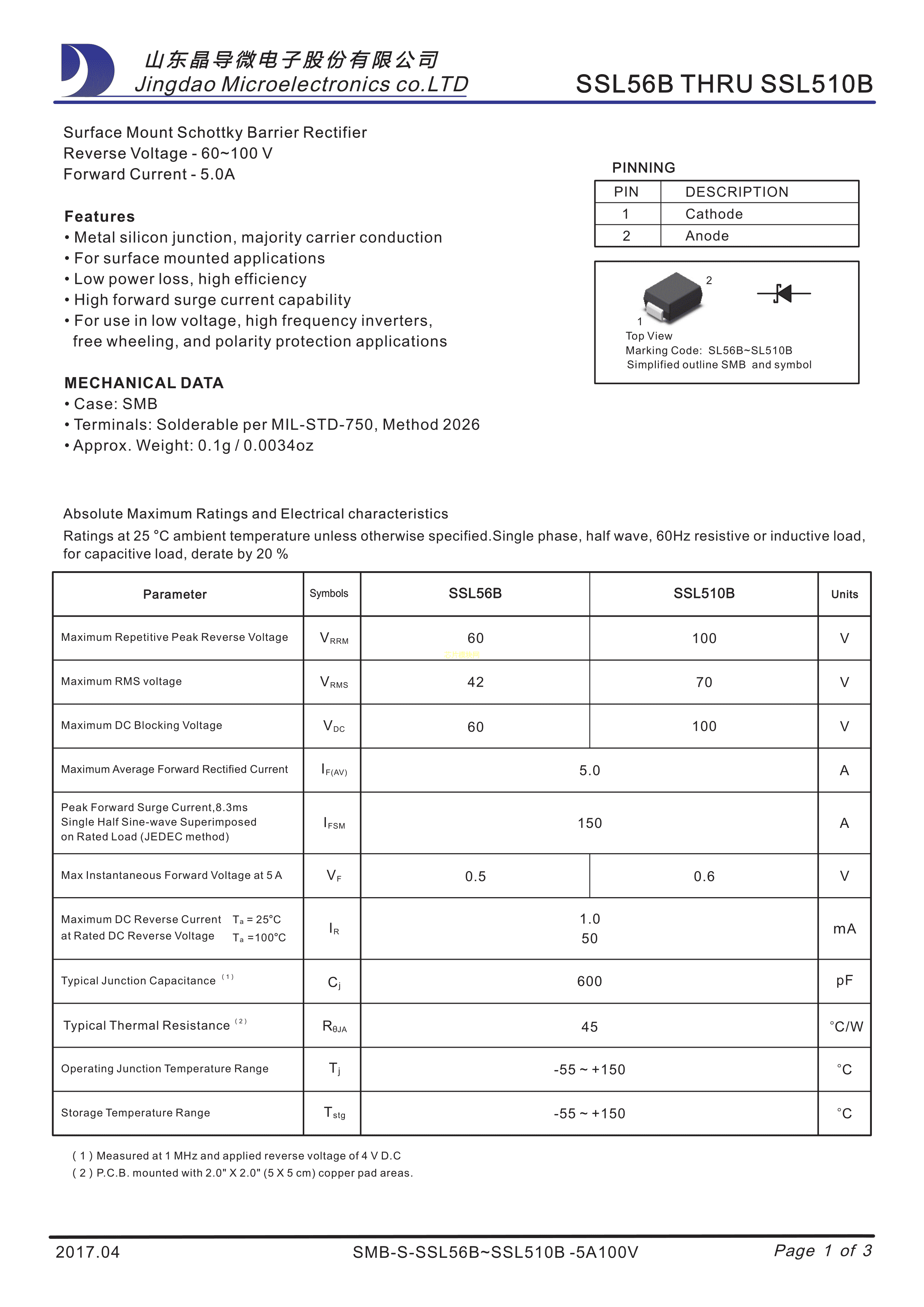 SSL510B数据手册SMB封装晶导微电子.pdf