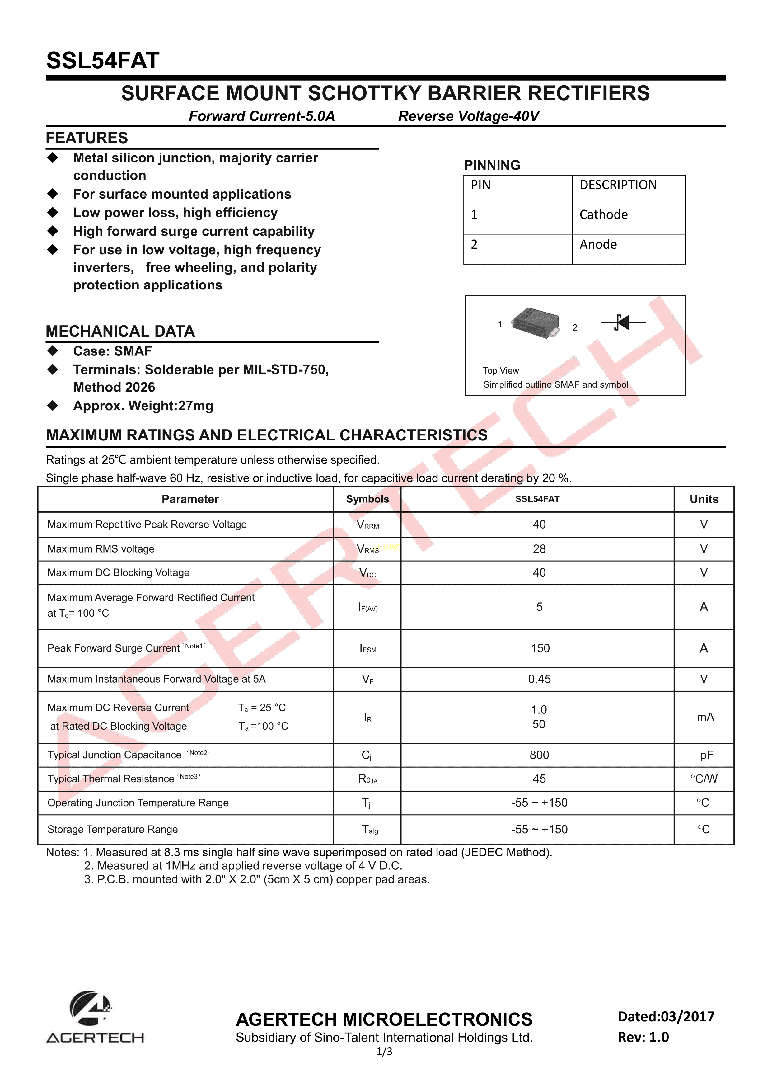 SSL54FAT数据手册SMAF封装Agertech(艾吉芯)PDF规格书,中英文下载