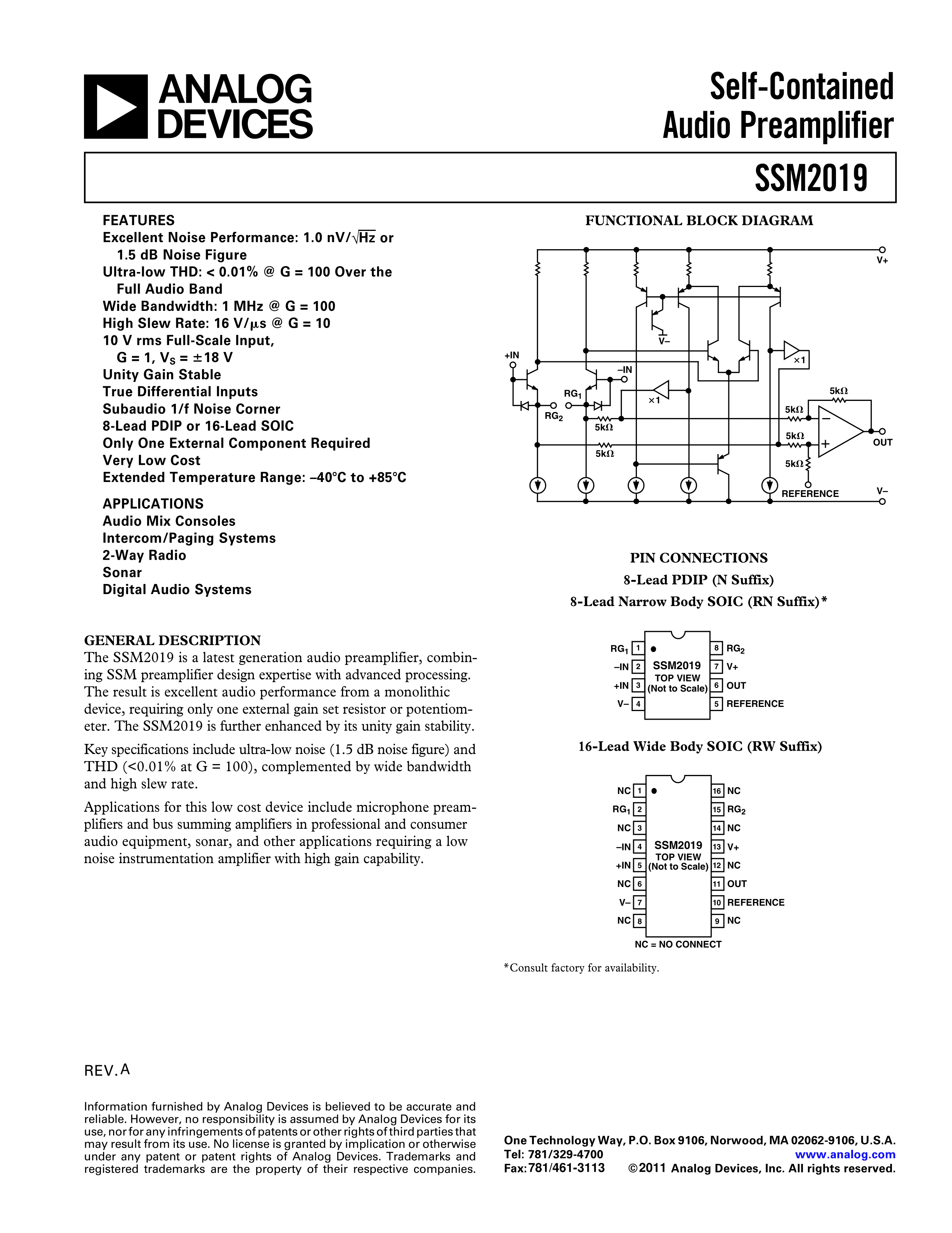 SSM2019BRWZRL数据手册SOIC-16封装ADI(亚德诺)-LINEARPDF规格书,中英