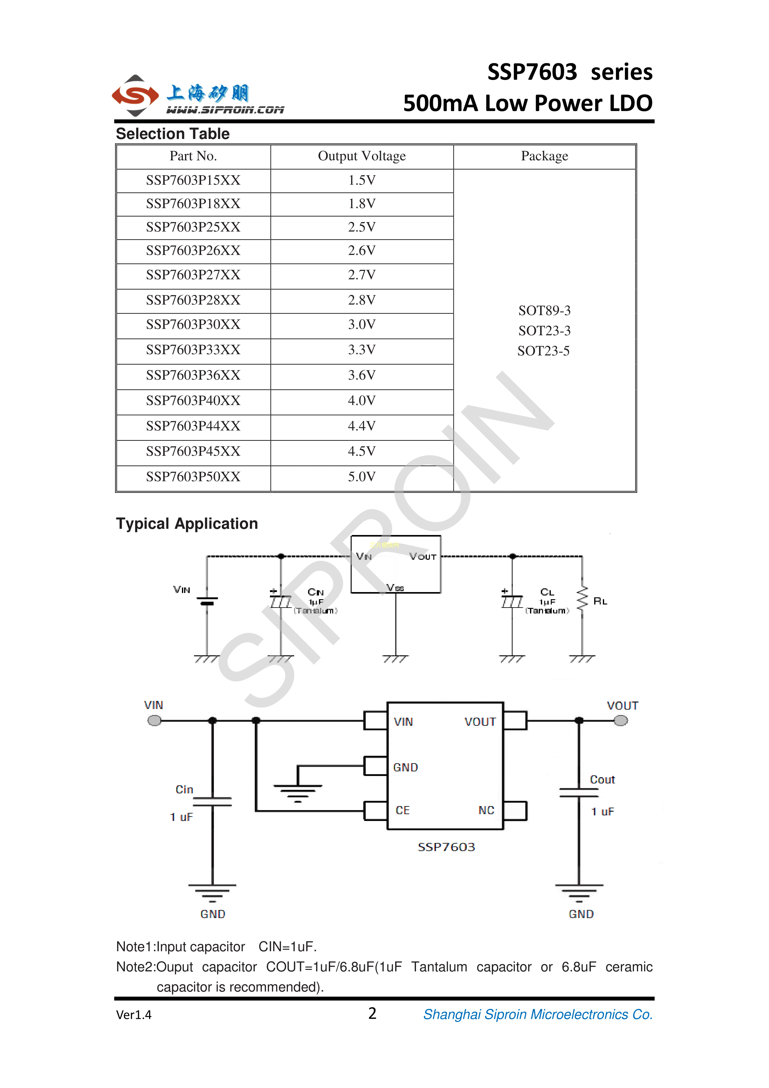 SSP7603P33MR数据手册SOT-23-3封装Siproin(上海矽朋)PDF规格书,中英文下