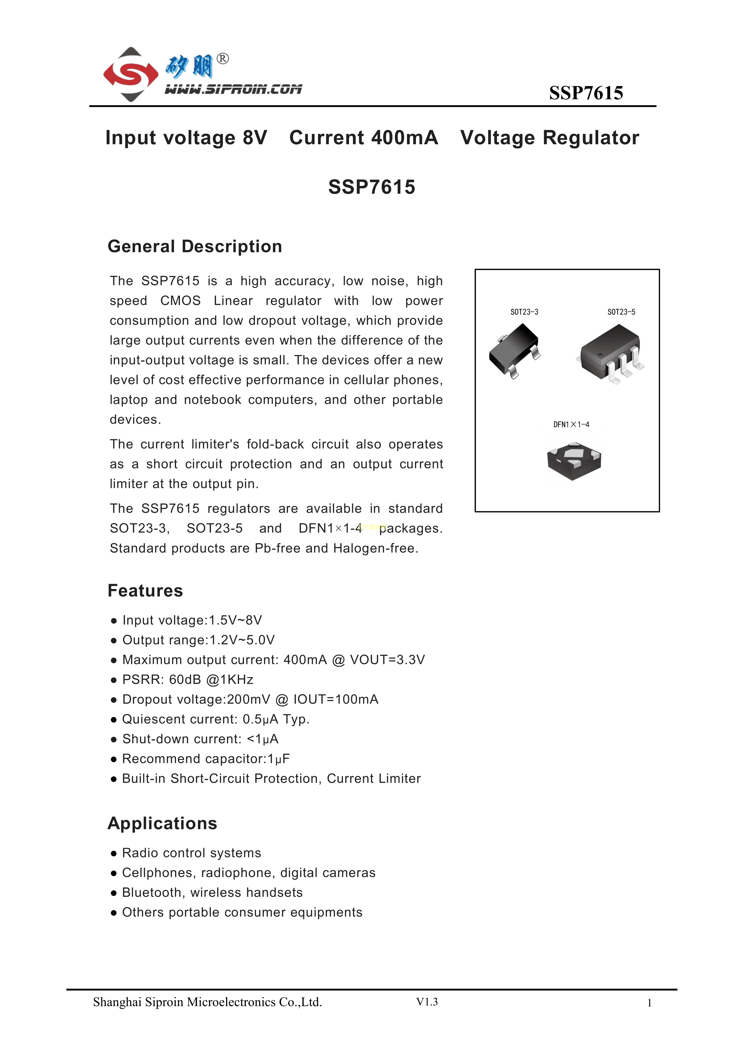 SSP7615-28DFR数据手册DFN1x1-4封装Siproin(上海矽朋)PDF规格书,中英文下载