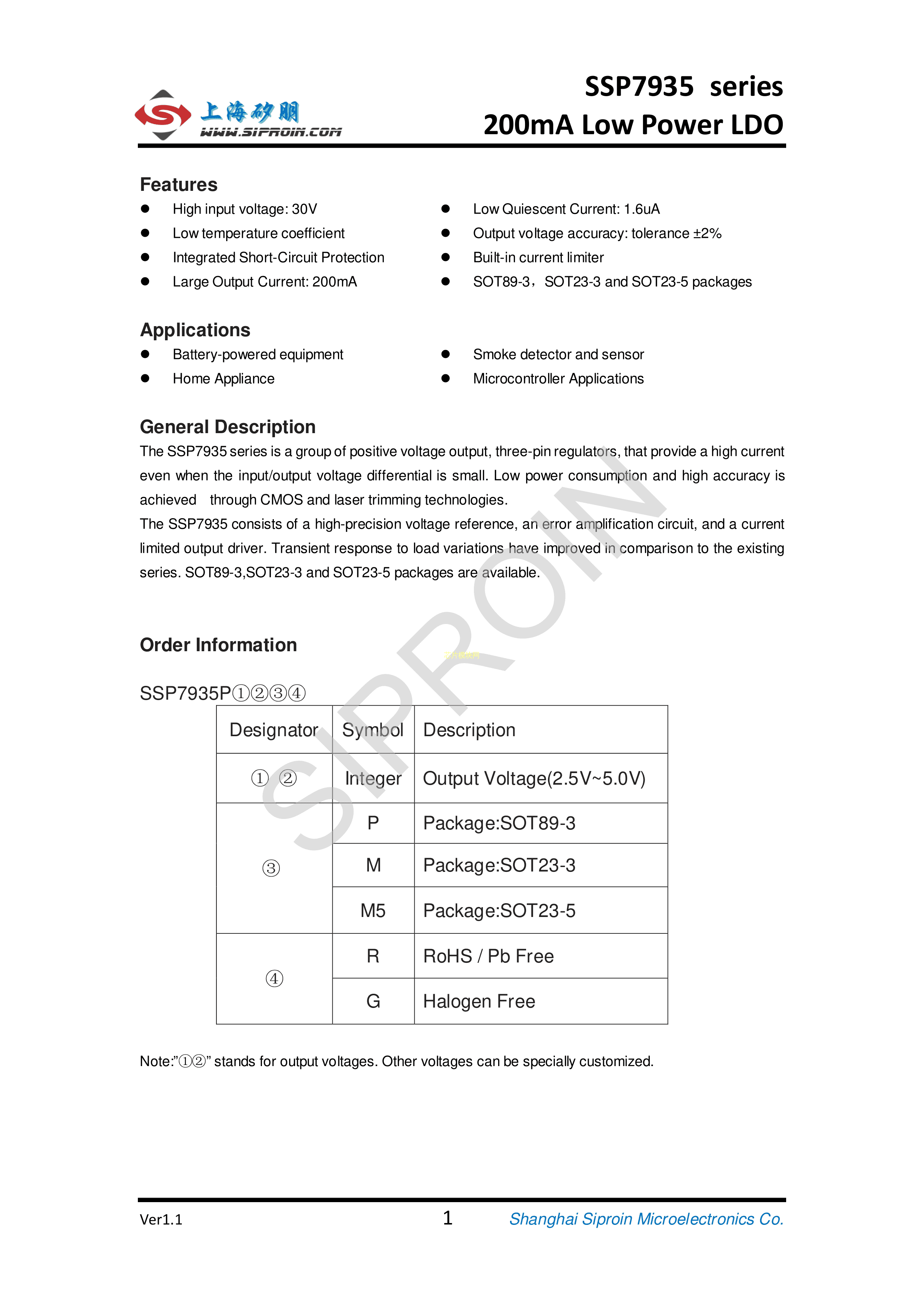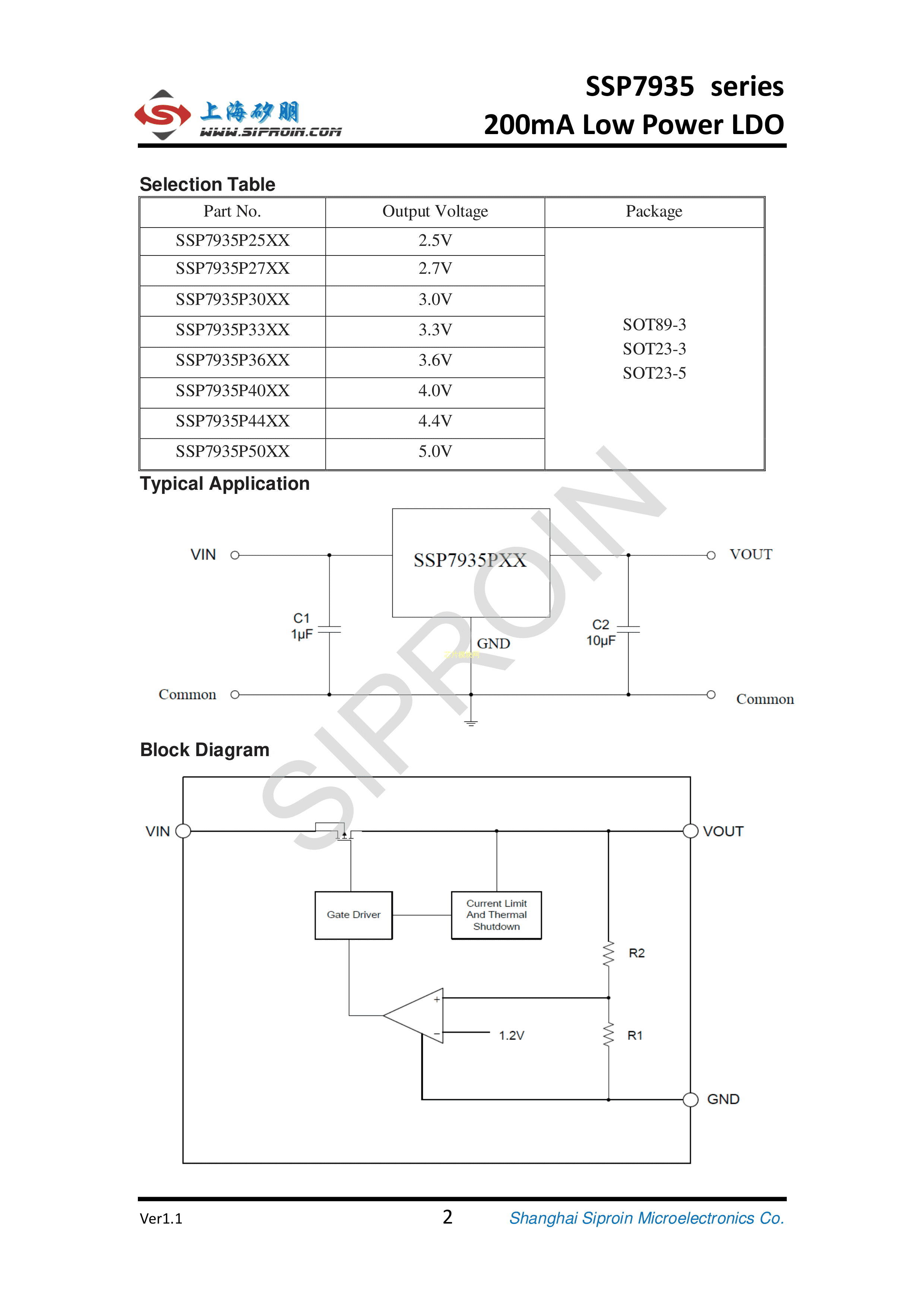 SSP7935P33MR数据手册SOT-23-3封装Siproin(上海矽朋)PDF规格书,中英文下