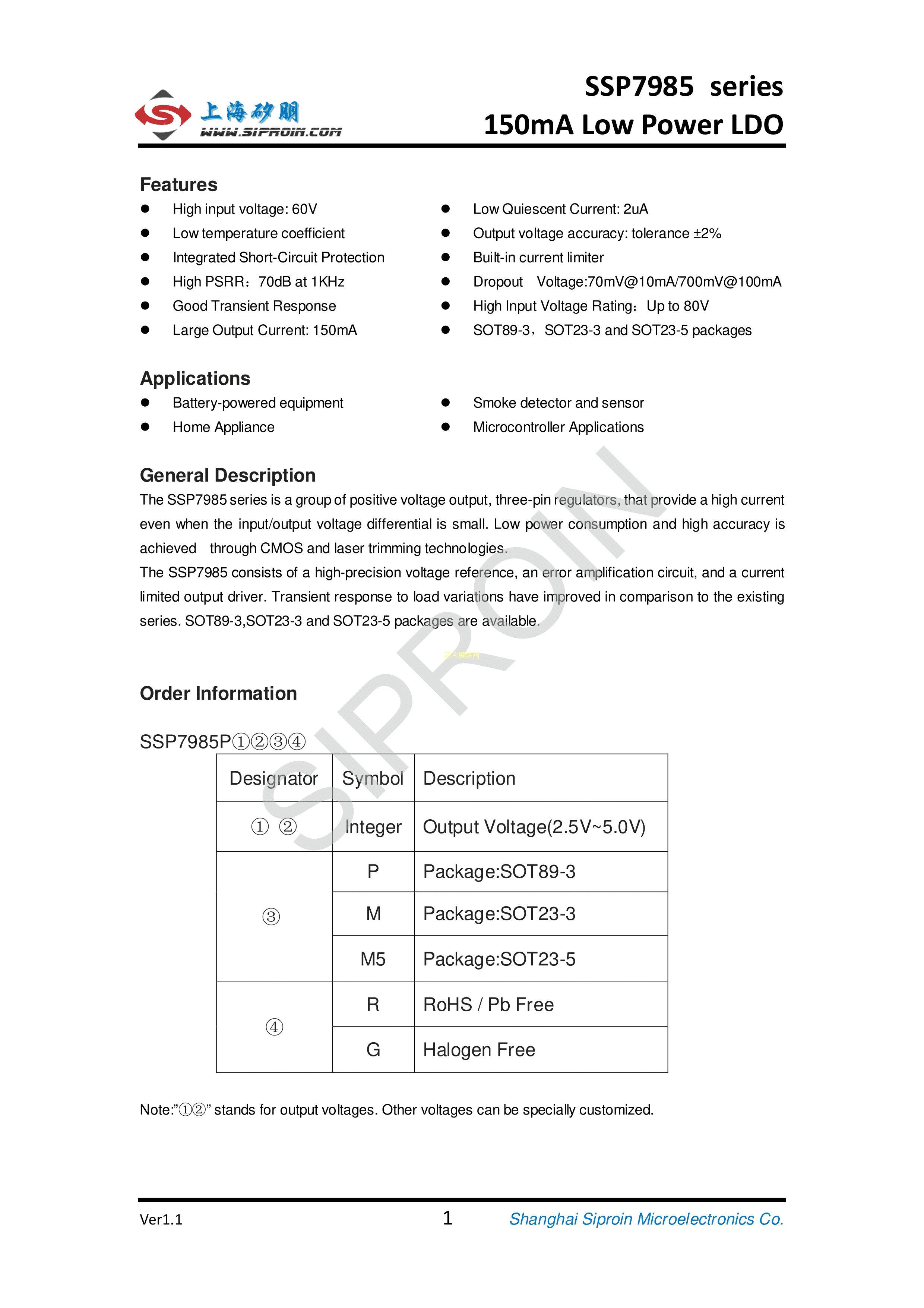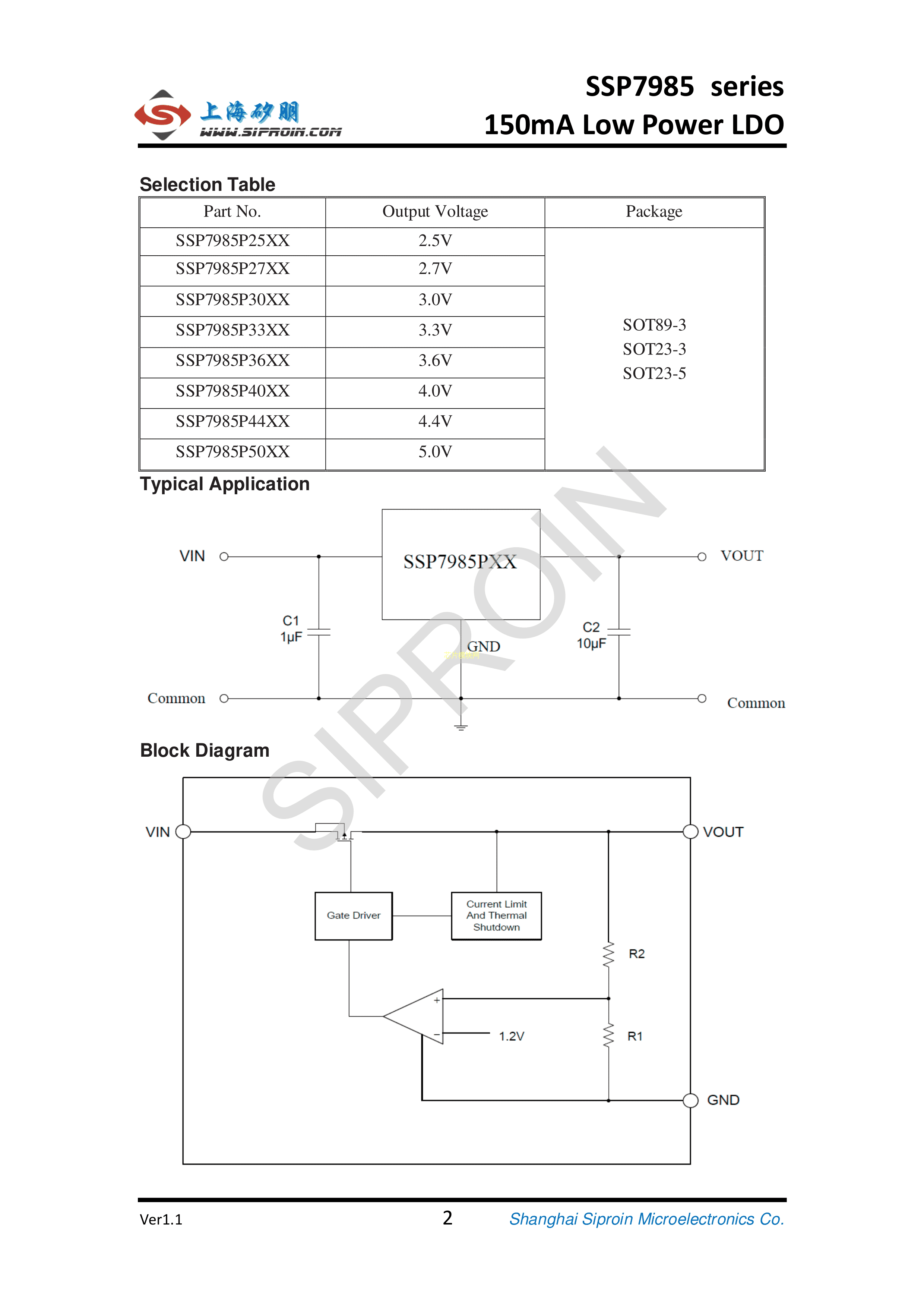 SSP7985P33PR数据手册SOT-89-3封装Siproin(上海矽朋)PDF规格书,中英文下