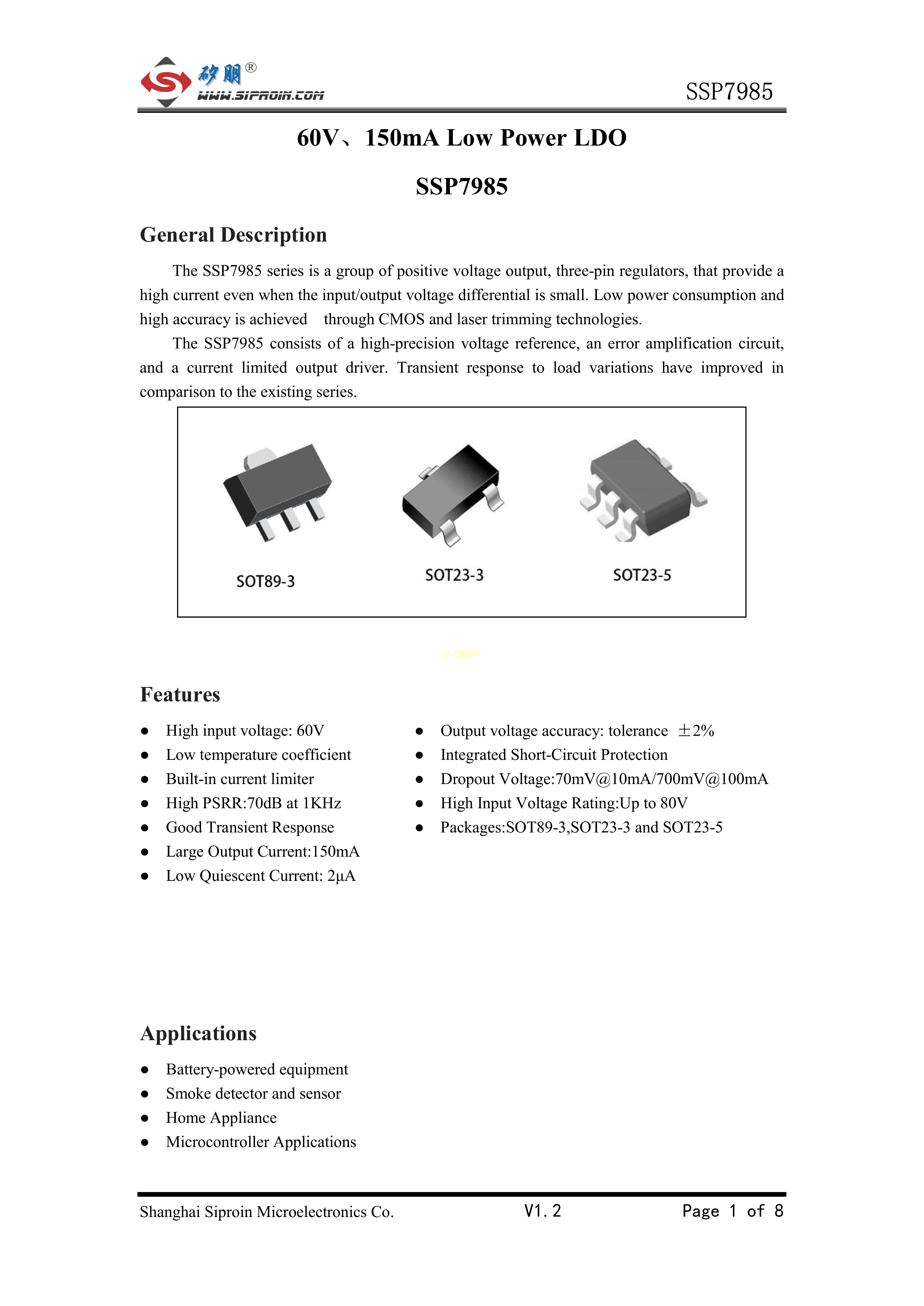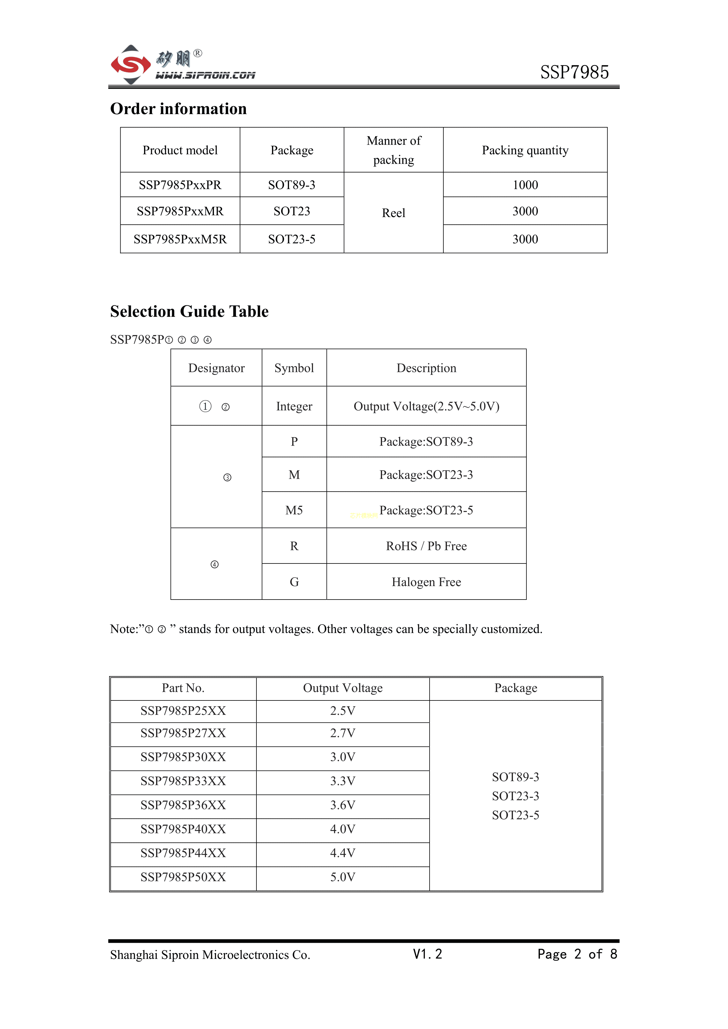 SSP7985P50PR数据手册SOT89封装Siproin(上海矽朋)PDF规格书,中英文下载