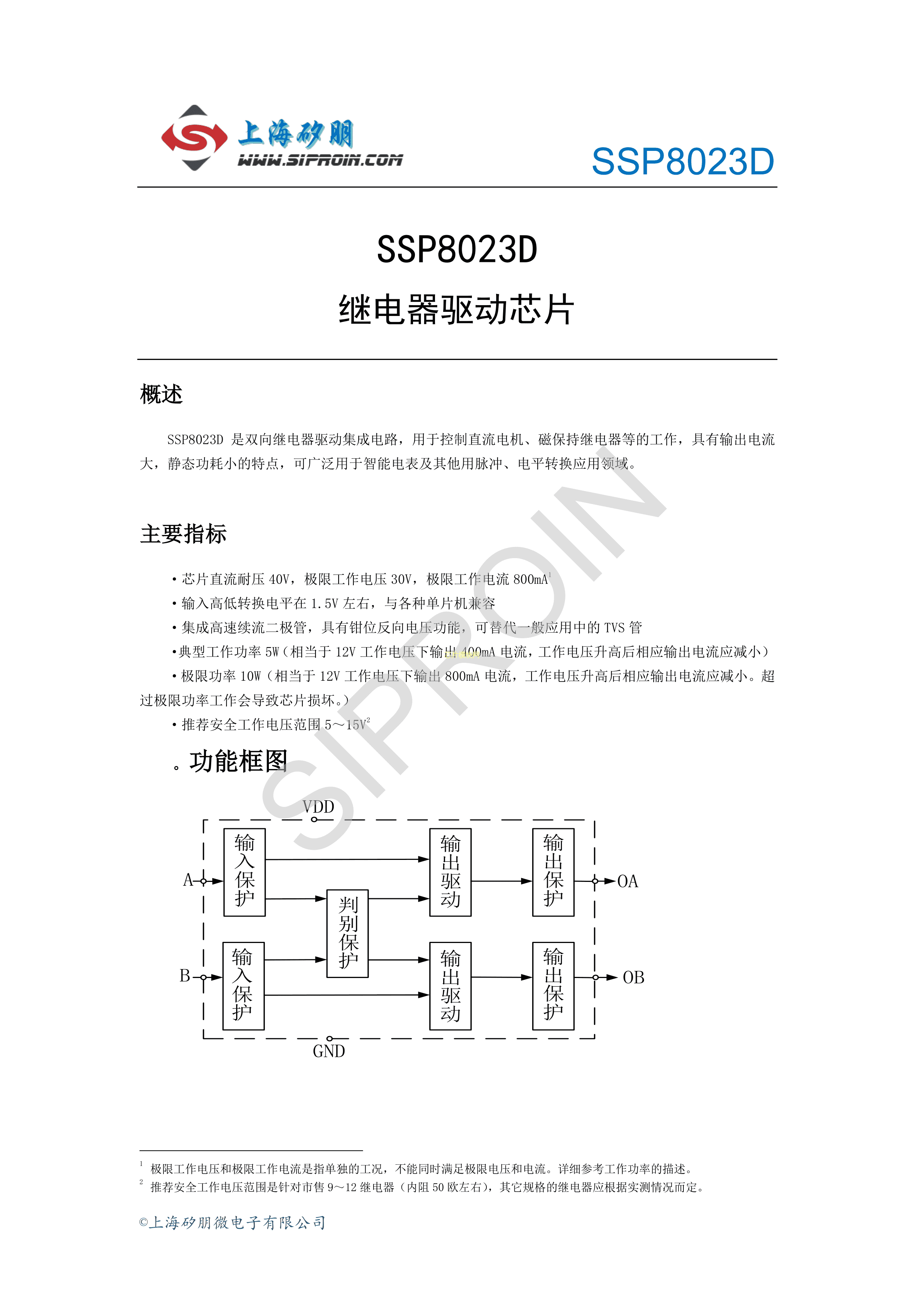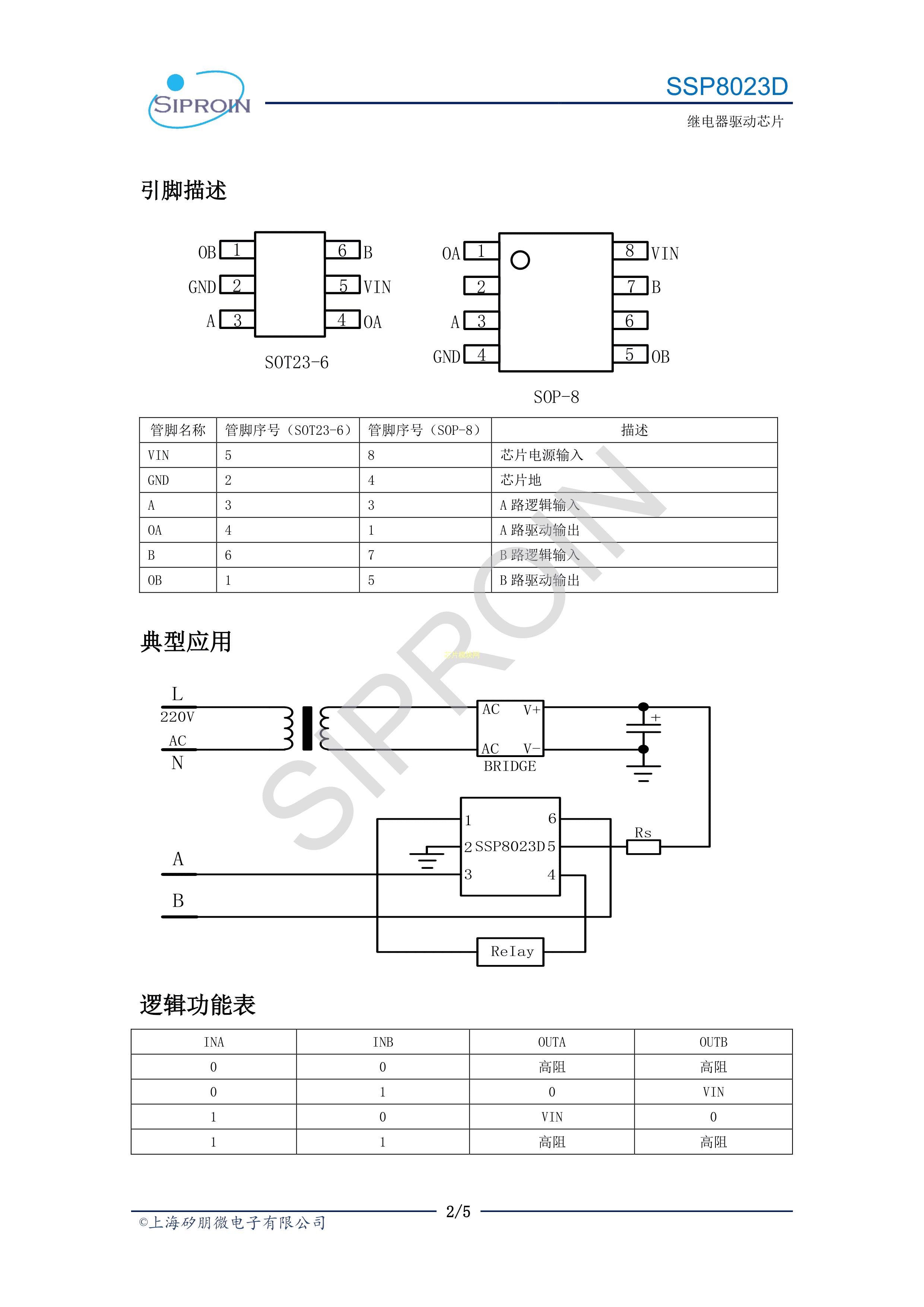 SSP8023D数据手册SOP-8封装Siproin(上海矽朋)PDF规格书,中英文下载