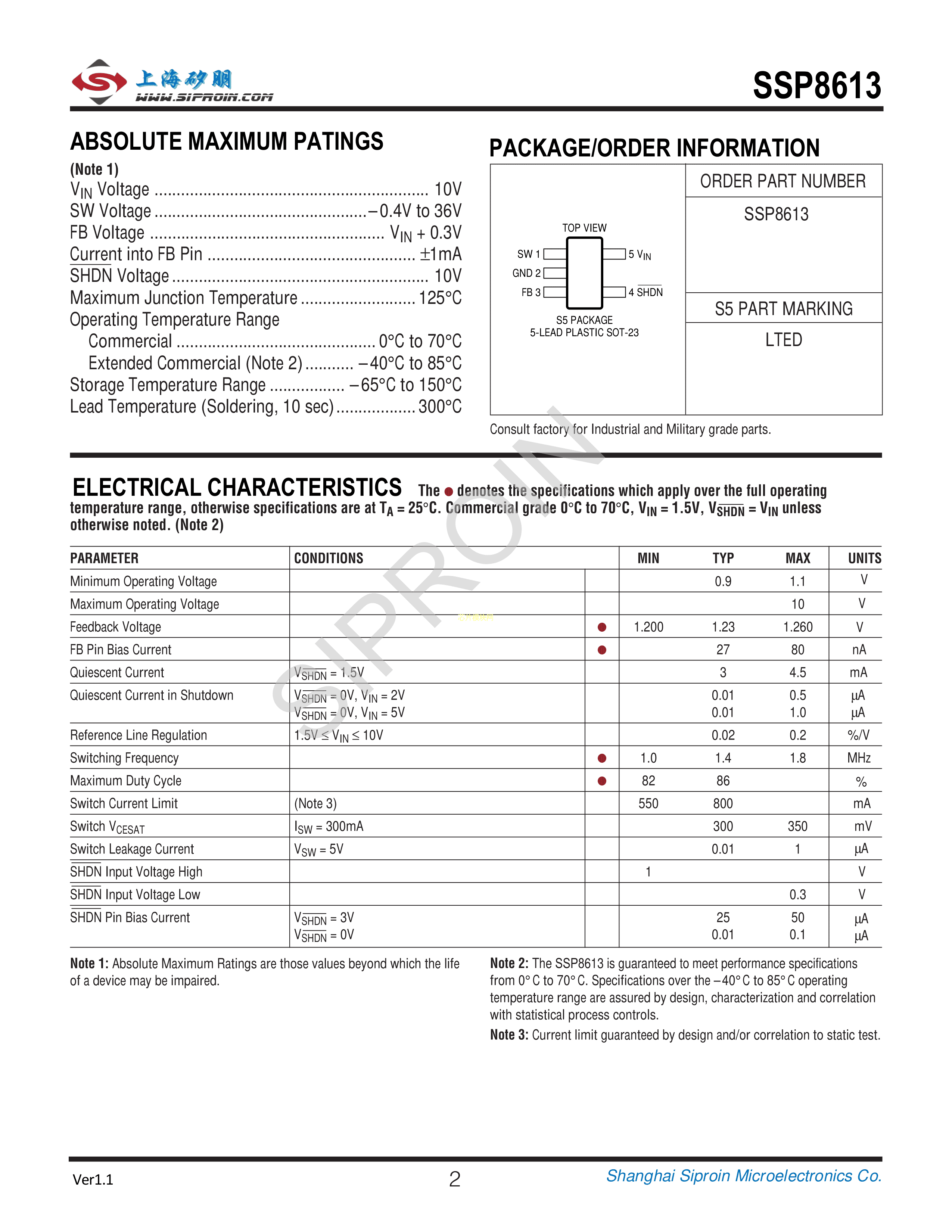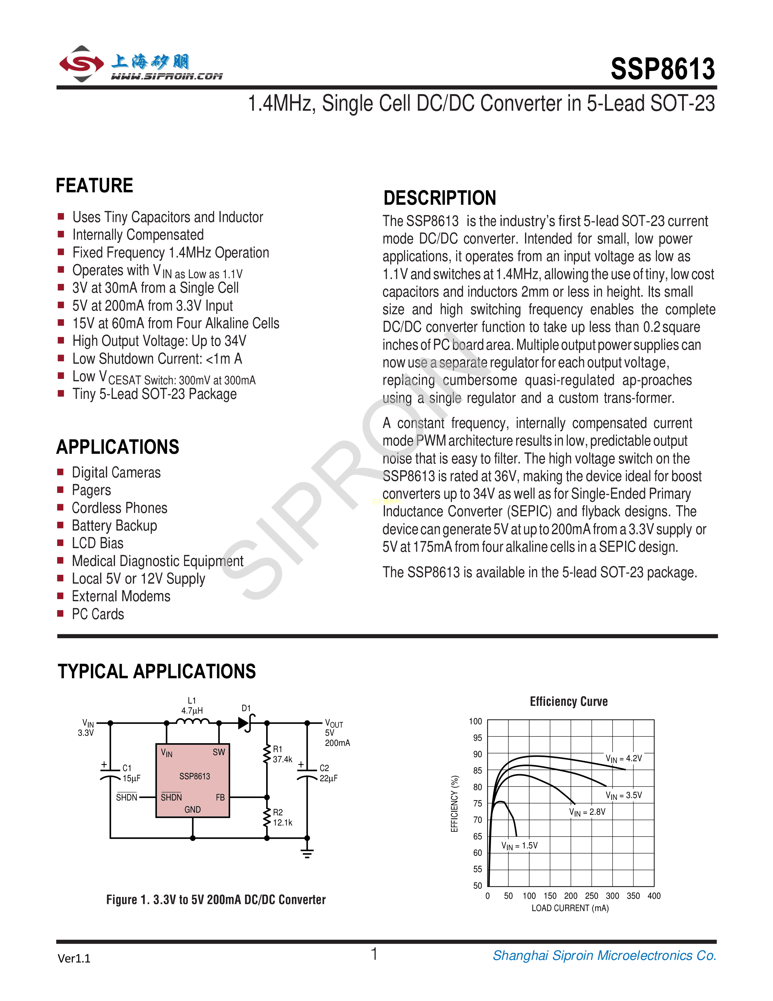SSP8613数据手册SOT-23-5封装Siproin(上海矽朋)PDF规格书,中英文下载