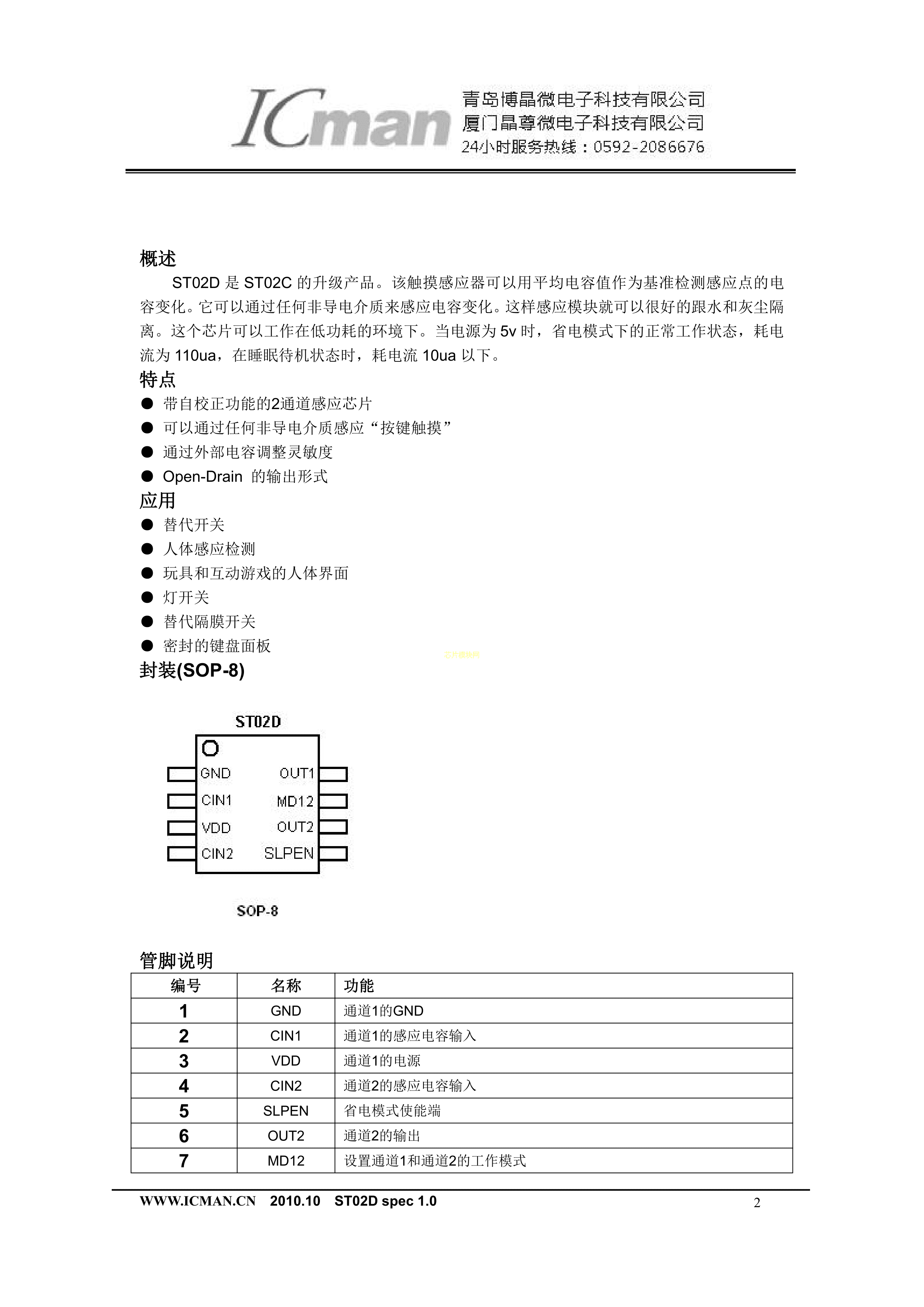 ST02D数据手册SOP-8_150mil封装icman(晶尊微)PDF规格书,中英文下载