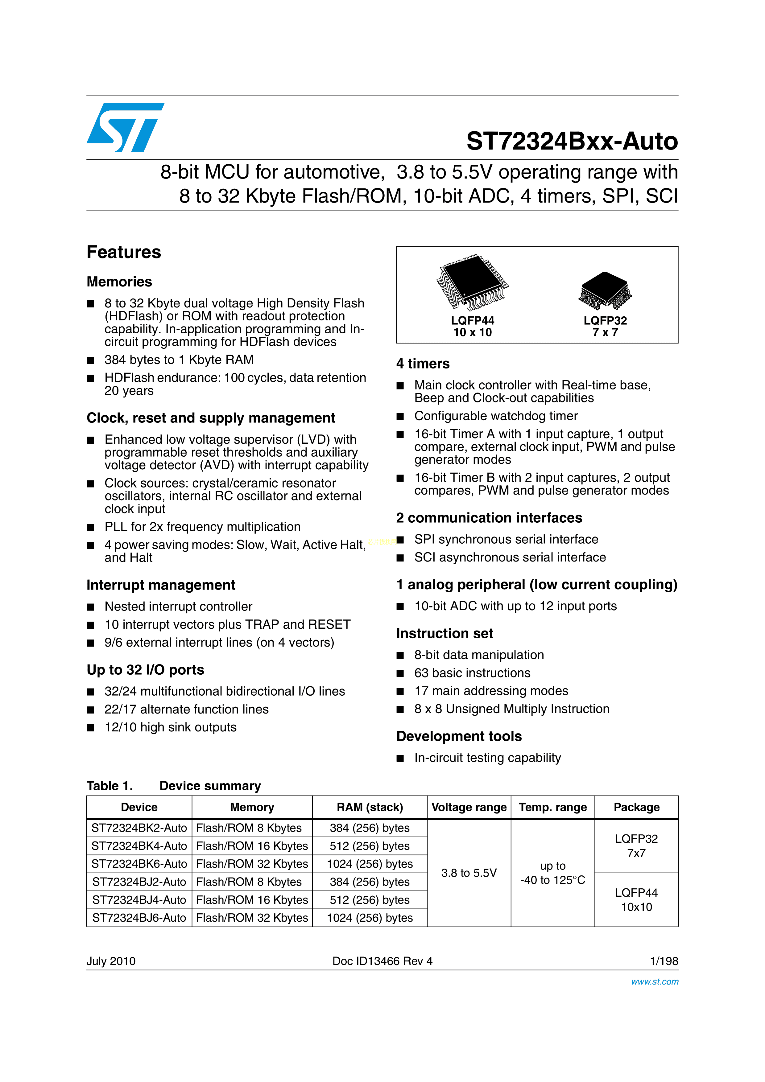 ST72F324BK2T6TR数据手册LQFP-32封装ST(意法半导体)PDF规格书,中英文下载