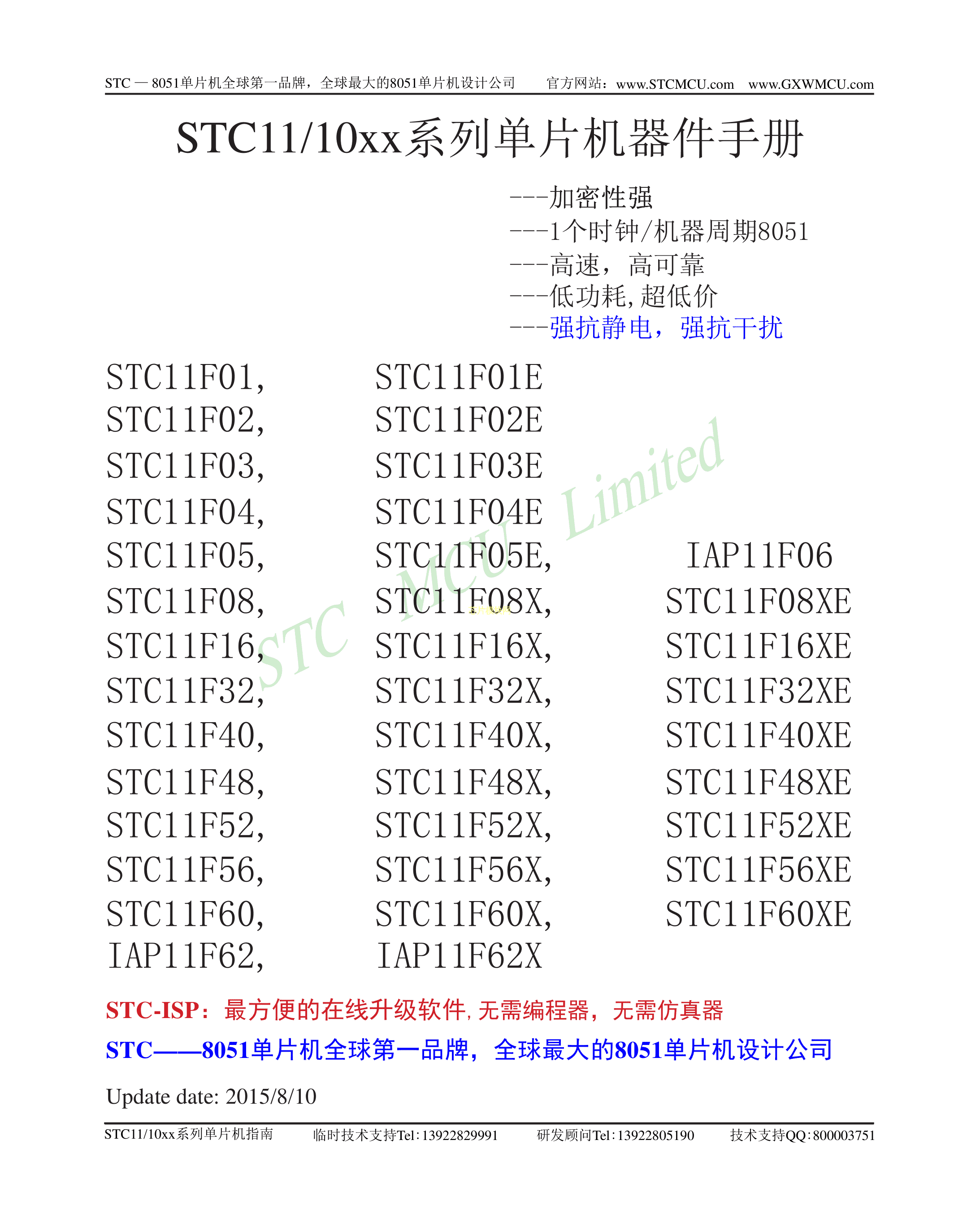STC11F40XE-35I-LQFP44数据手册LQFP-44_10x10x08P封装STC(宏晶)PDF规格书,中英文下载