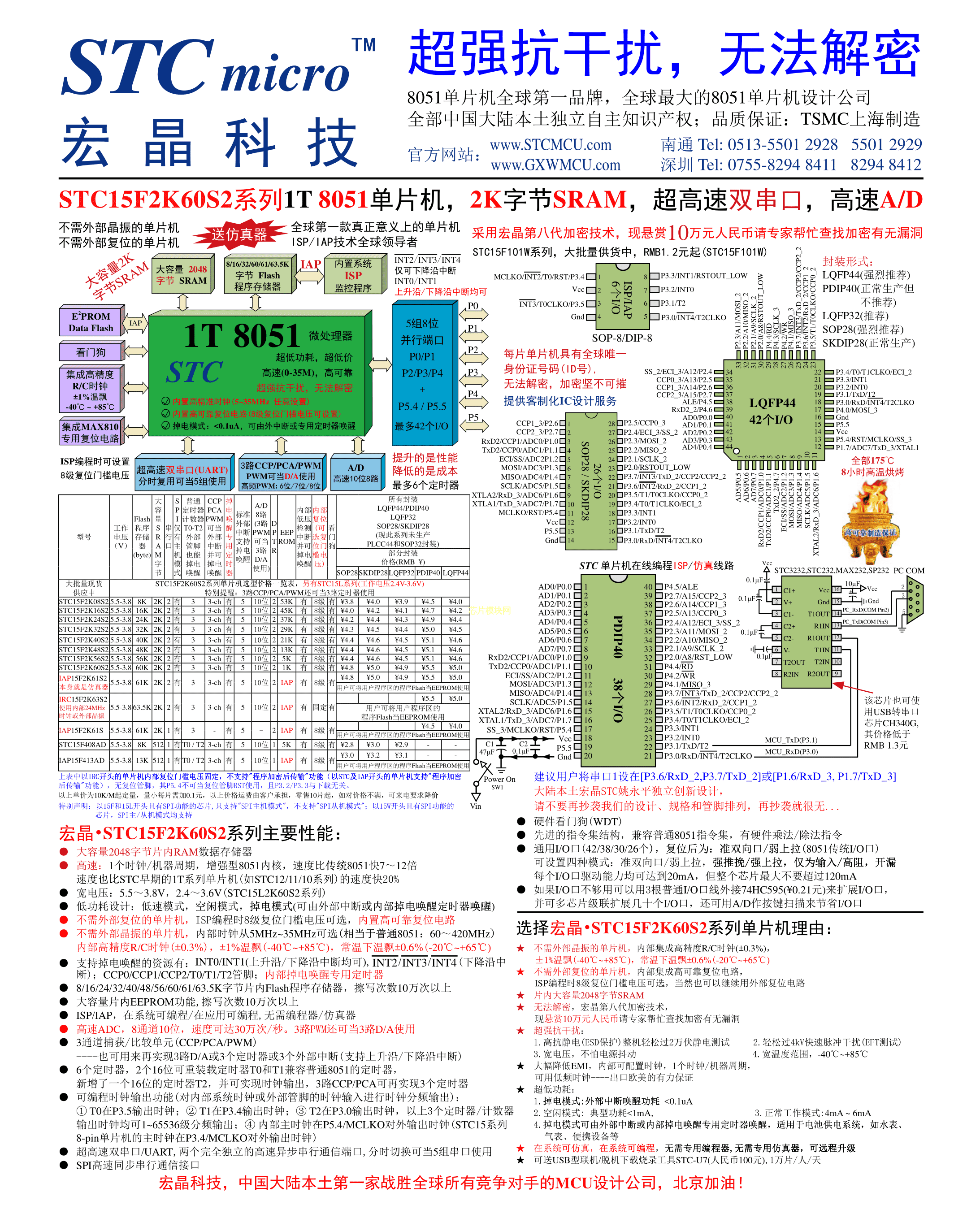 STC15F2K60S2-35I数据手册LQFP-44_10x10x08P封装STC(宏晶)PDF规格书,中英文下载