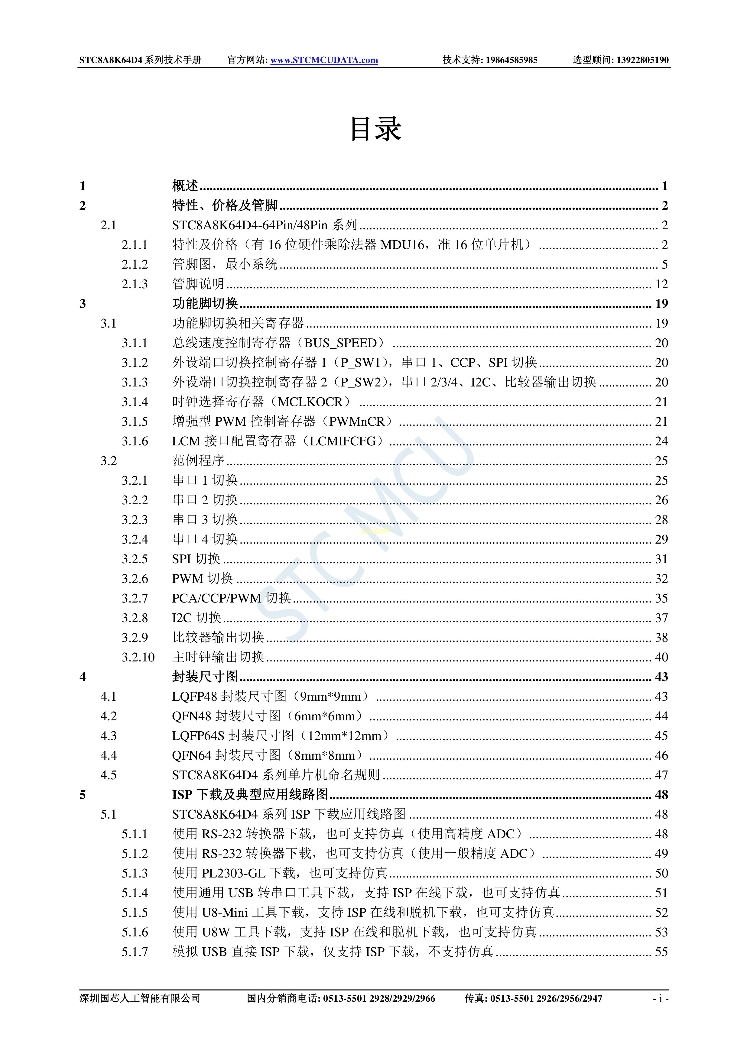 STC8A8K32D4-45I-LQFP48数据手册LQFP48封装STC(宏晶)PDF规格书,中英文下载