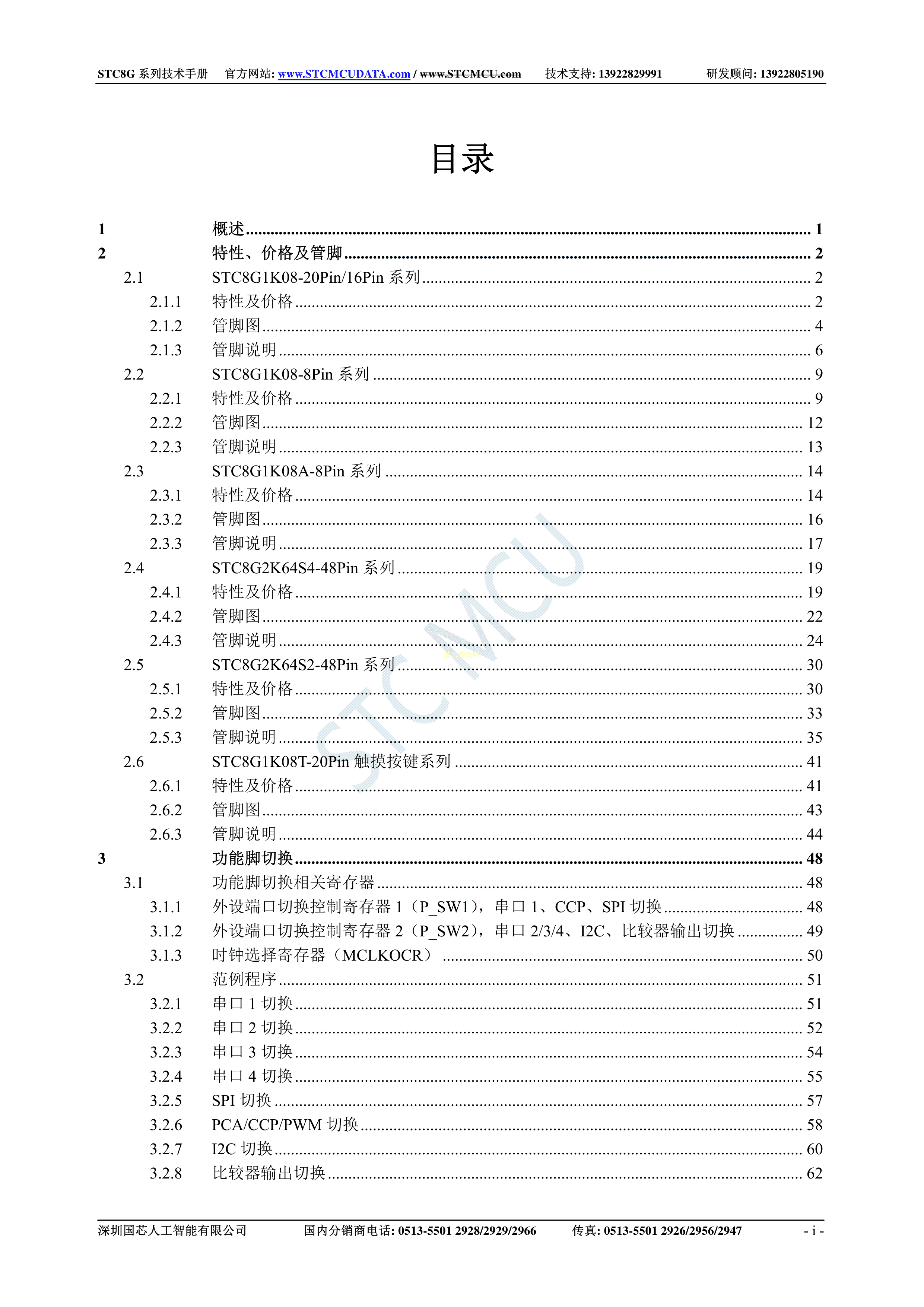 STC8G2K64S4-36I-LQFP48数据手册LQFP-48封装STC(宏晶)PDF规格书,中英文下载