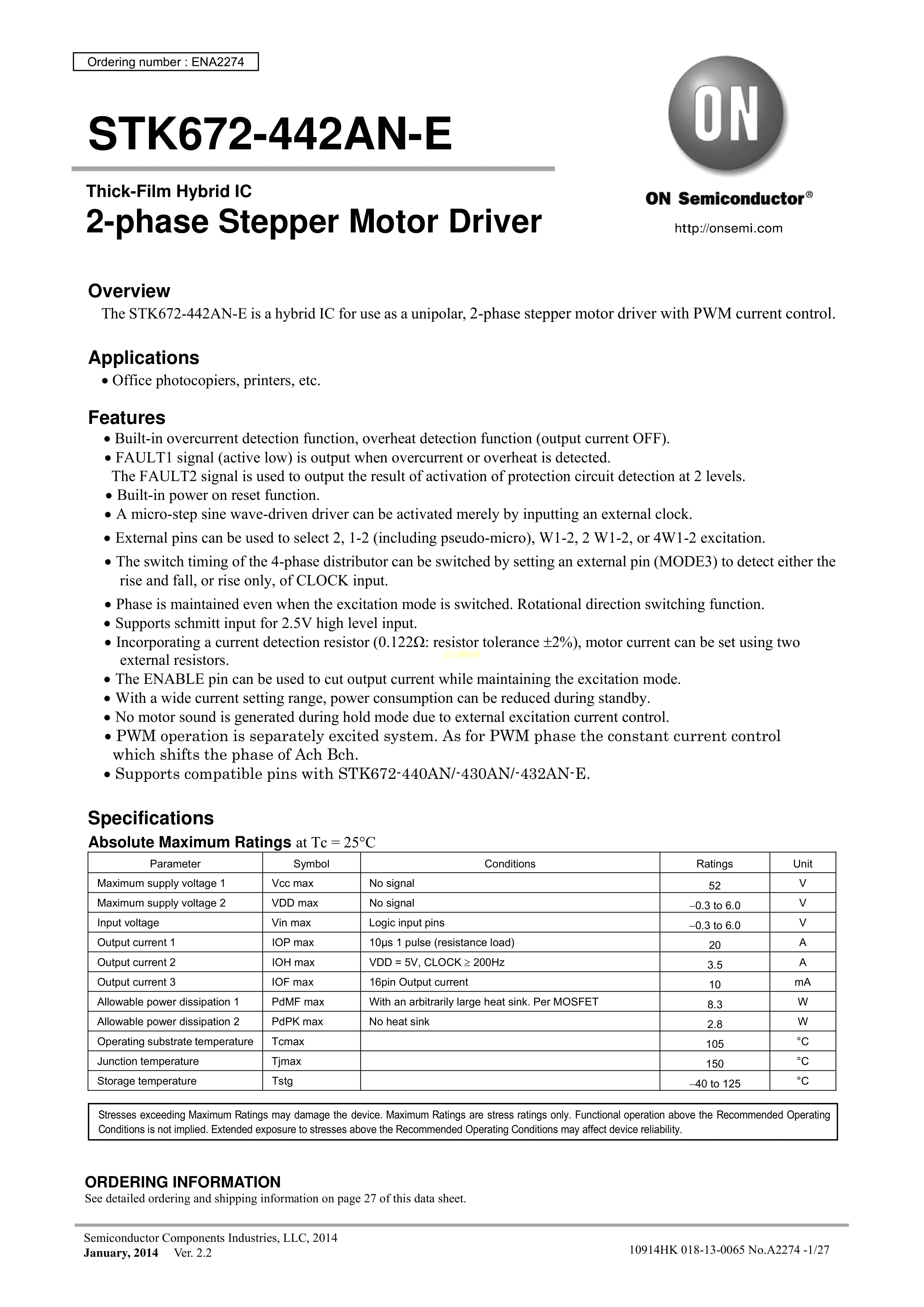 STK672-442AN-E数据手册SIP-19封装onsemi(安森美)PDF规格书,中英文下载