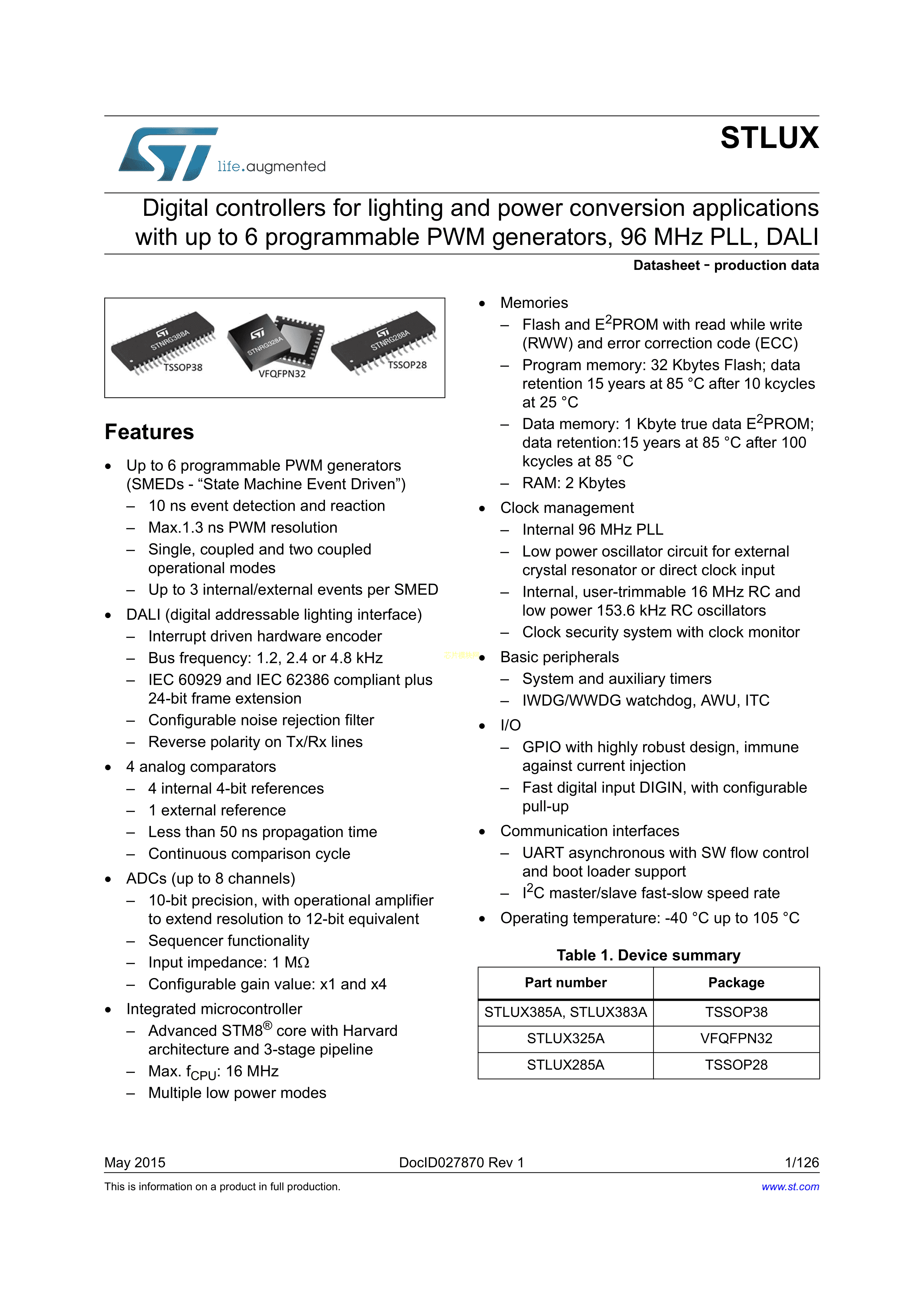 STLUX385A数据手册TSSOP-38封装ST(意法半导体)PDF规格书,中英文下载
