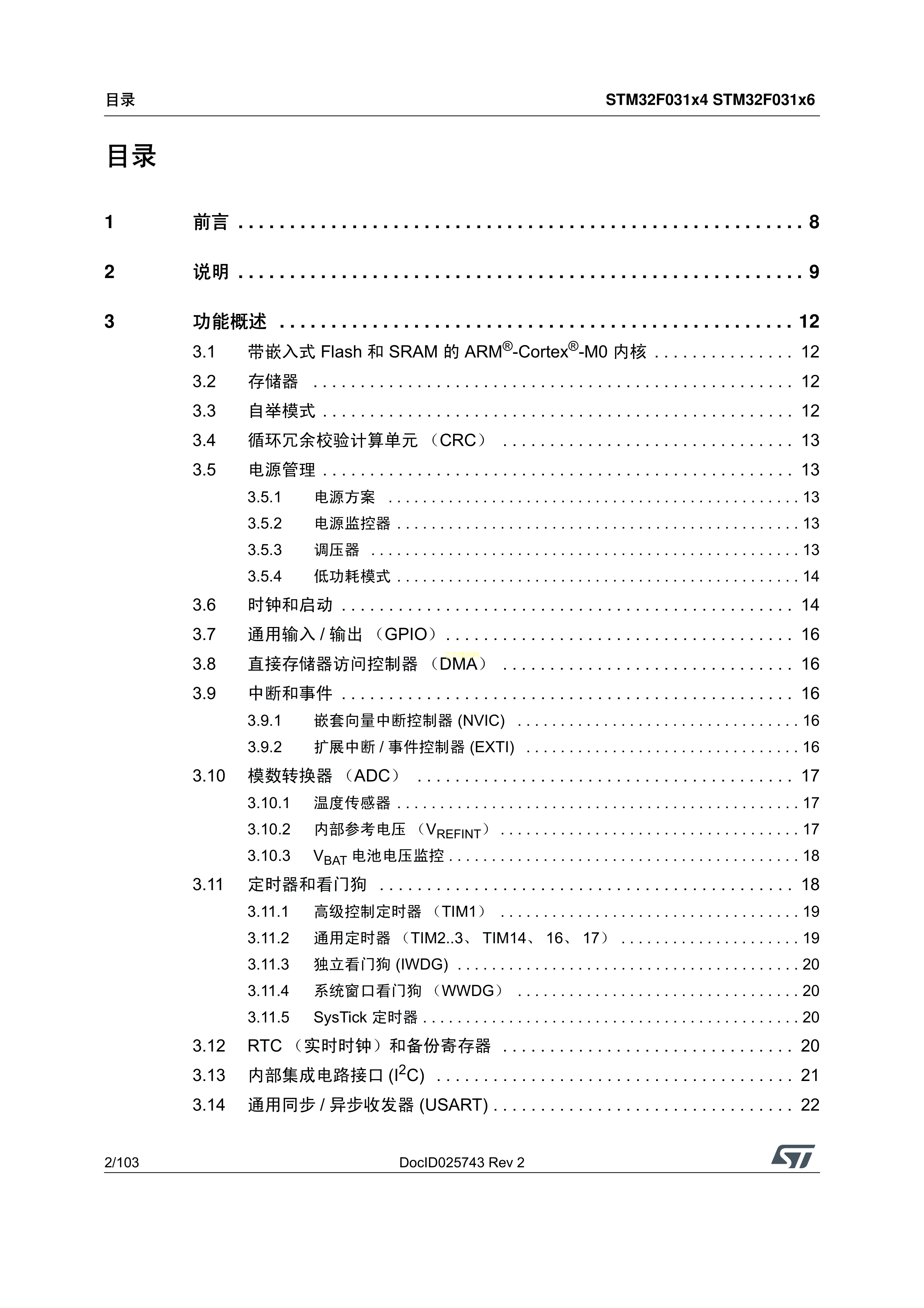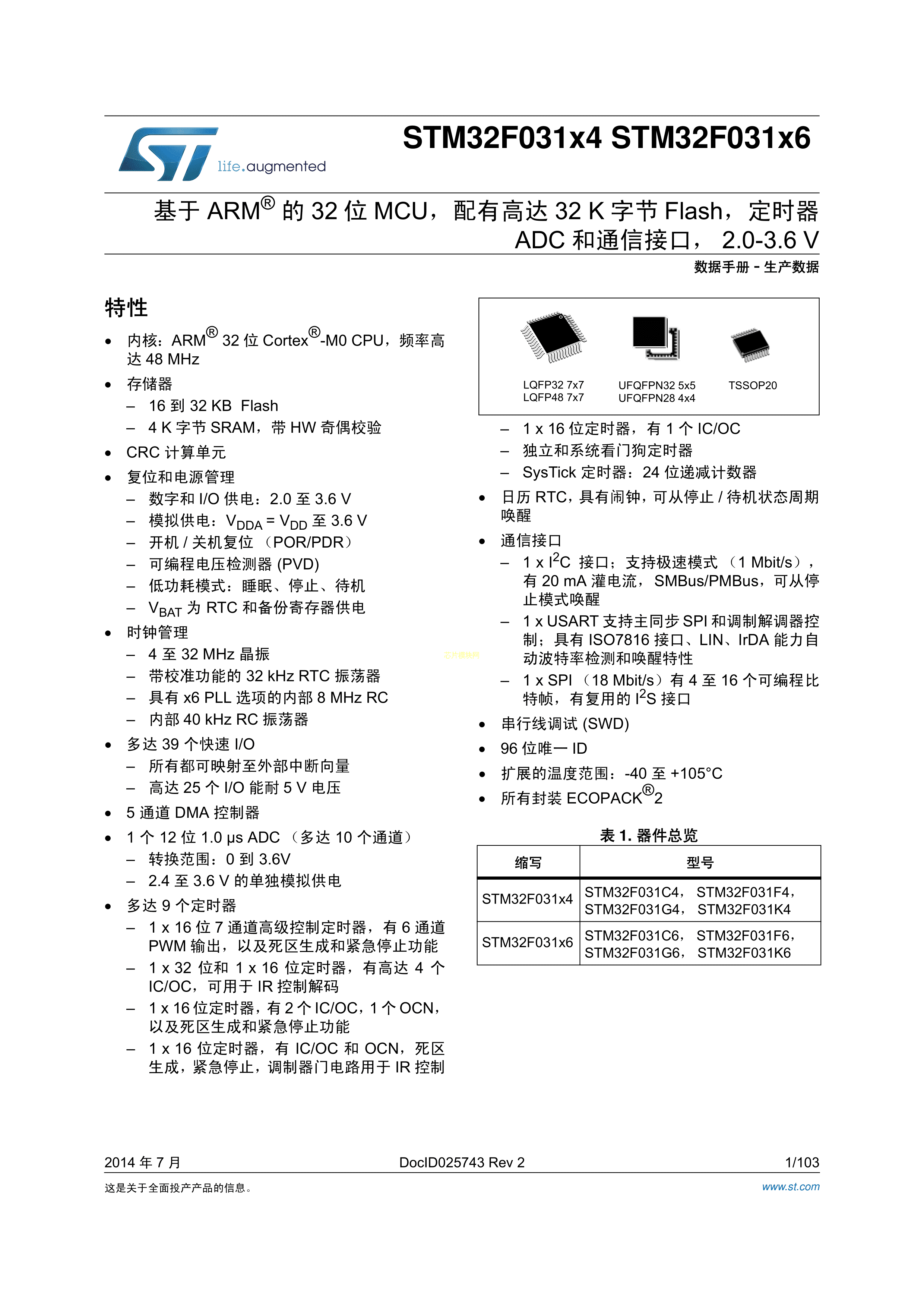STM32F031C6T6数据手册LQFP-48_7x7x05P封装ST(意法半导体)PDF规格书,