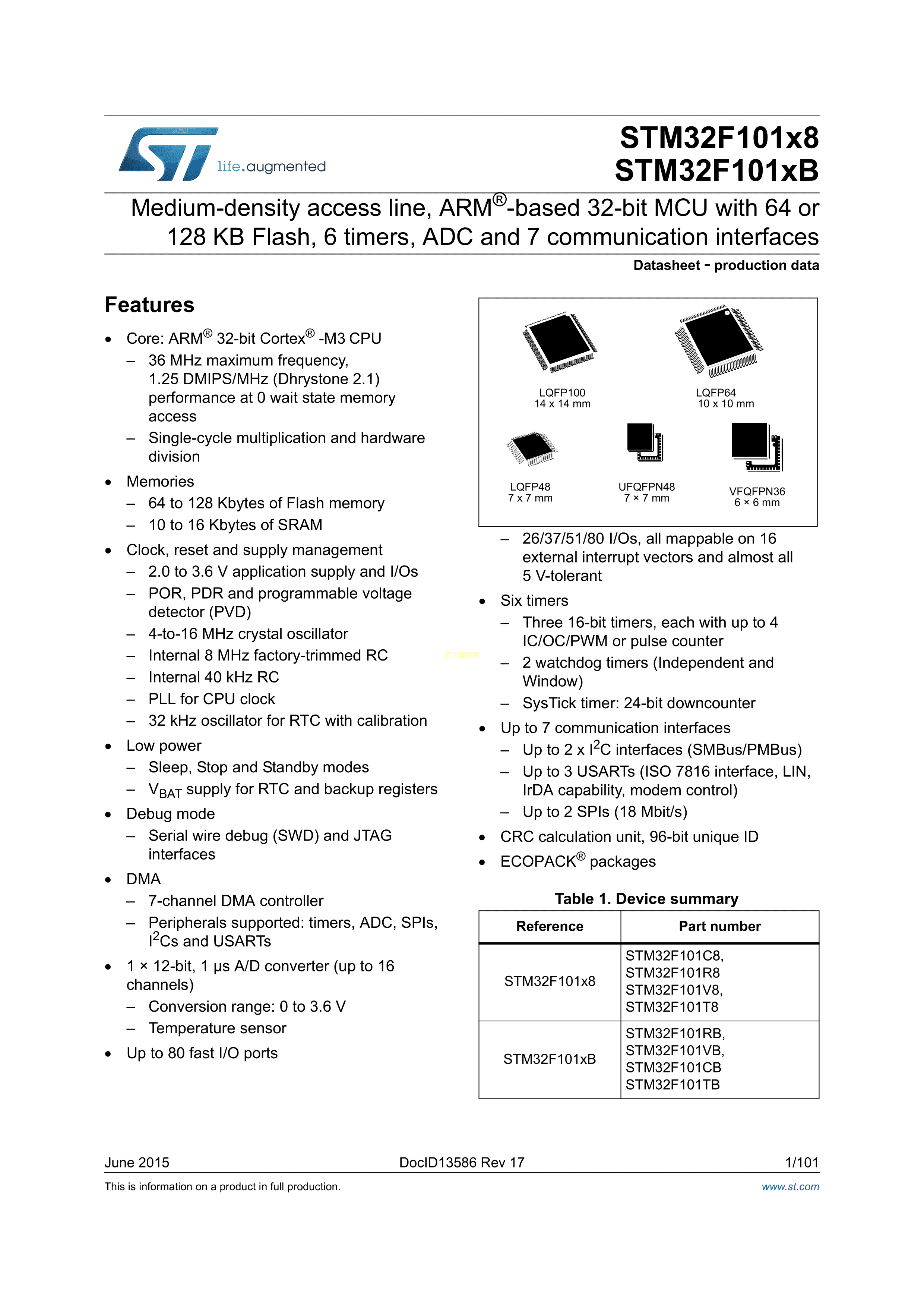 STM32F101RBH6数据手册BGA-64(5x5)封装ST(意法半导体)PDF规格书,中英文下