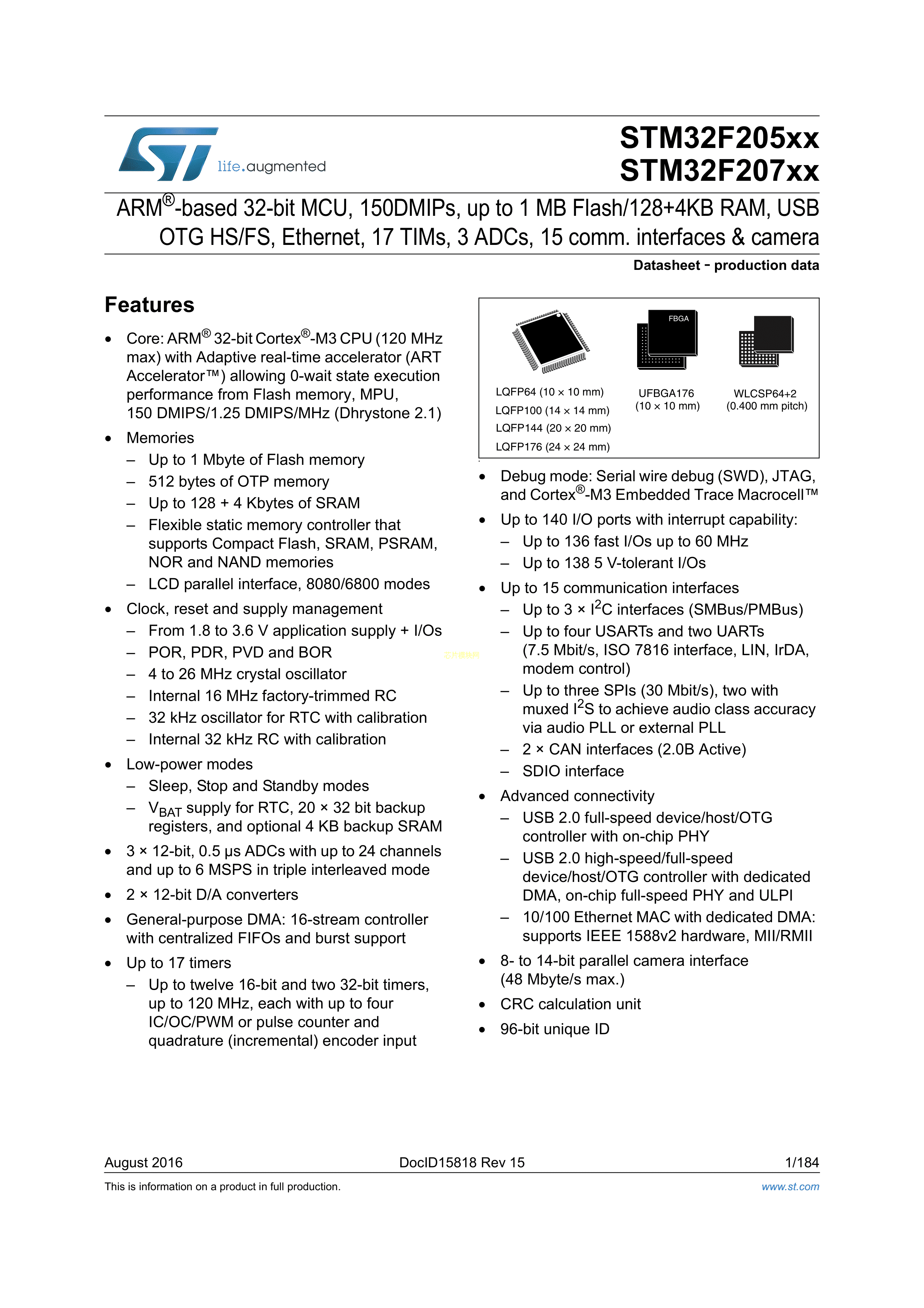 STM32F205RET6数据手册LQFP-64_10x10x05P封装ST(意法半导体)PDF规格