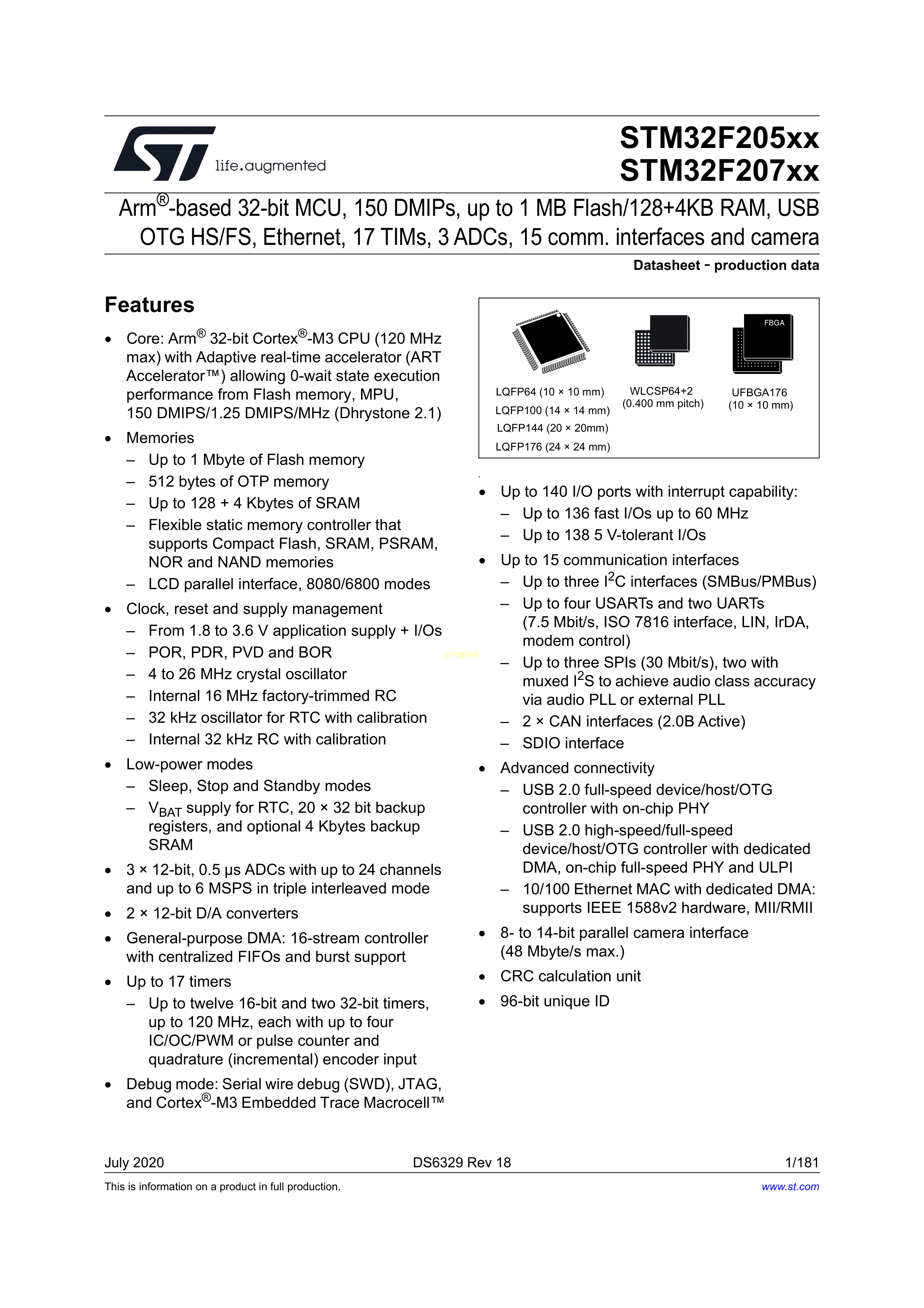 STM32F207ZCT6数据手册LQFP-144(20x20)封装ST(意法半导体)PDF规格书,