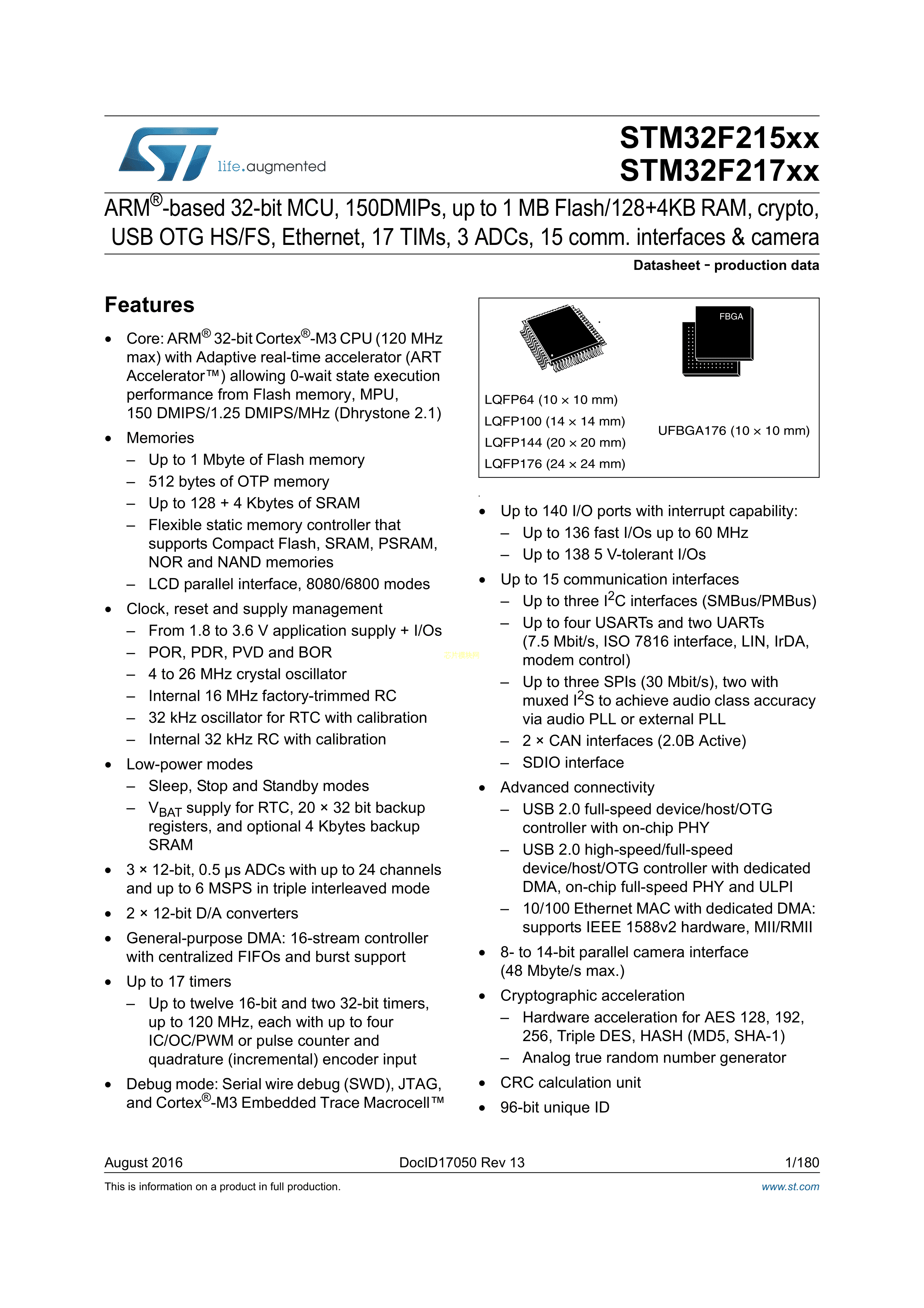STM32F215ZGT7数据手册LQFP-144(20x20)封装ST(意法半导体)PDF规格书,