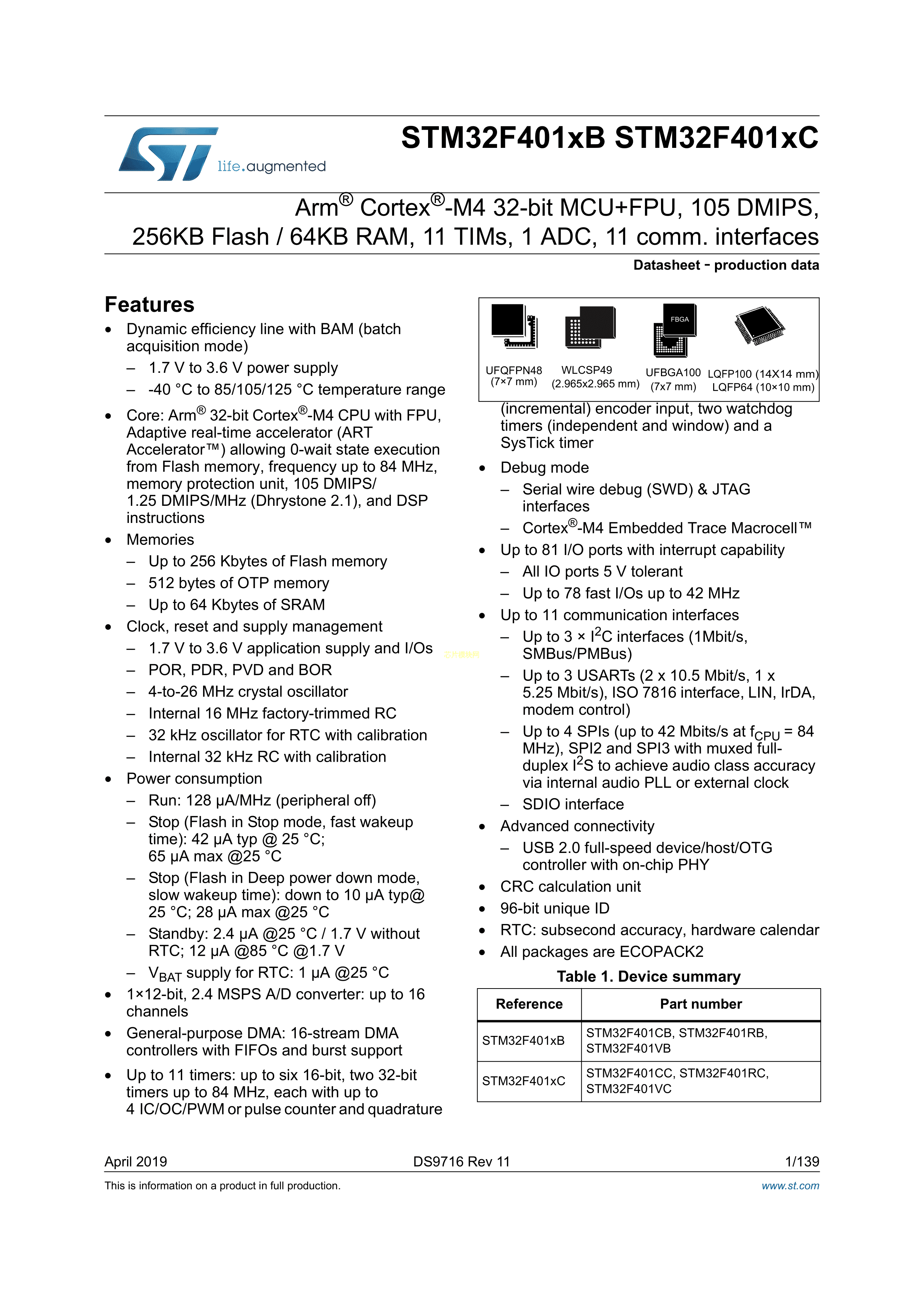 STM32F401CBY6TR数据手册WLCSP-49封装ST(意法半导体)PDF规格书,中英文下载