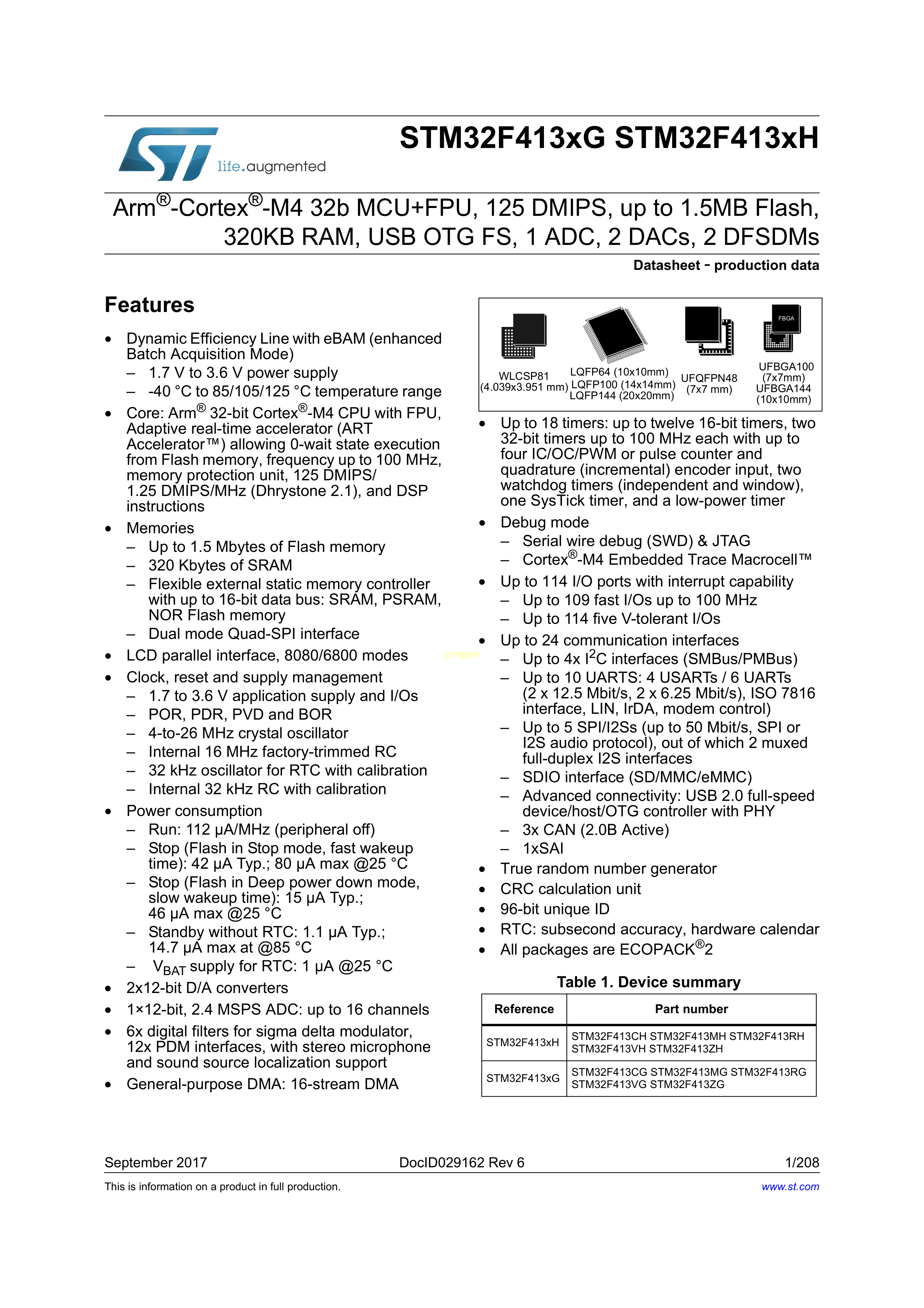 STM32F413RGT6TR数据手册LQFP-64(10x10)封装ST(意法半导体)PDF规格书
