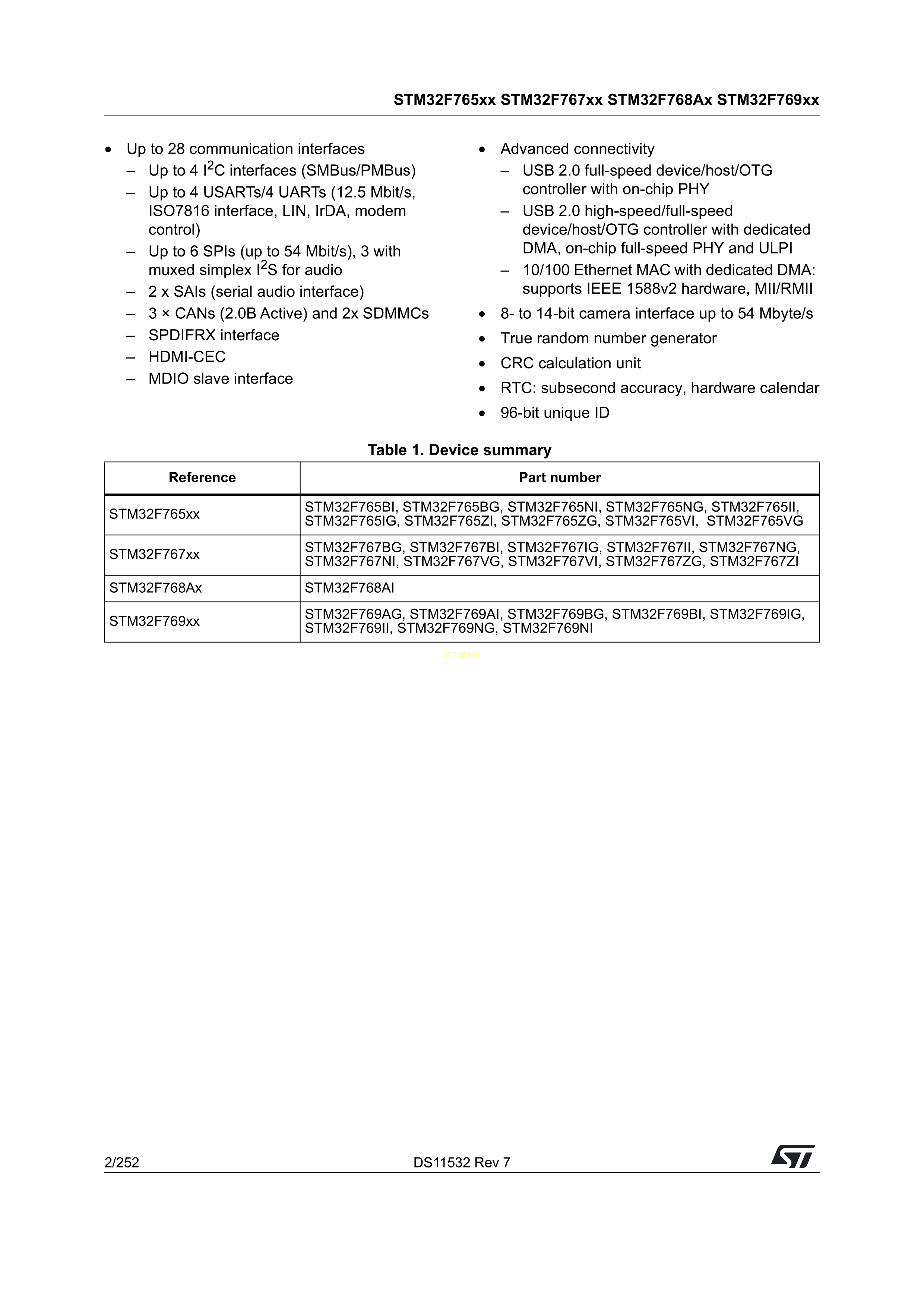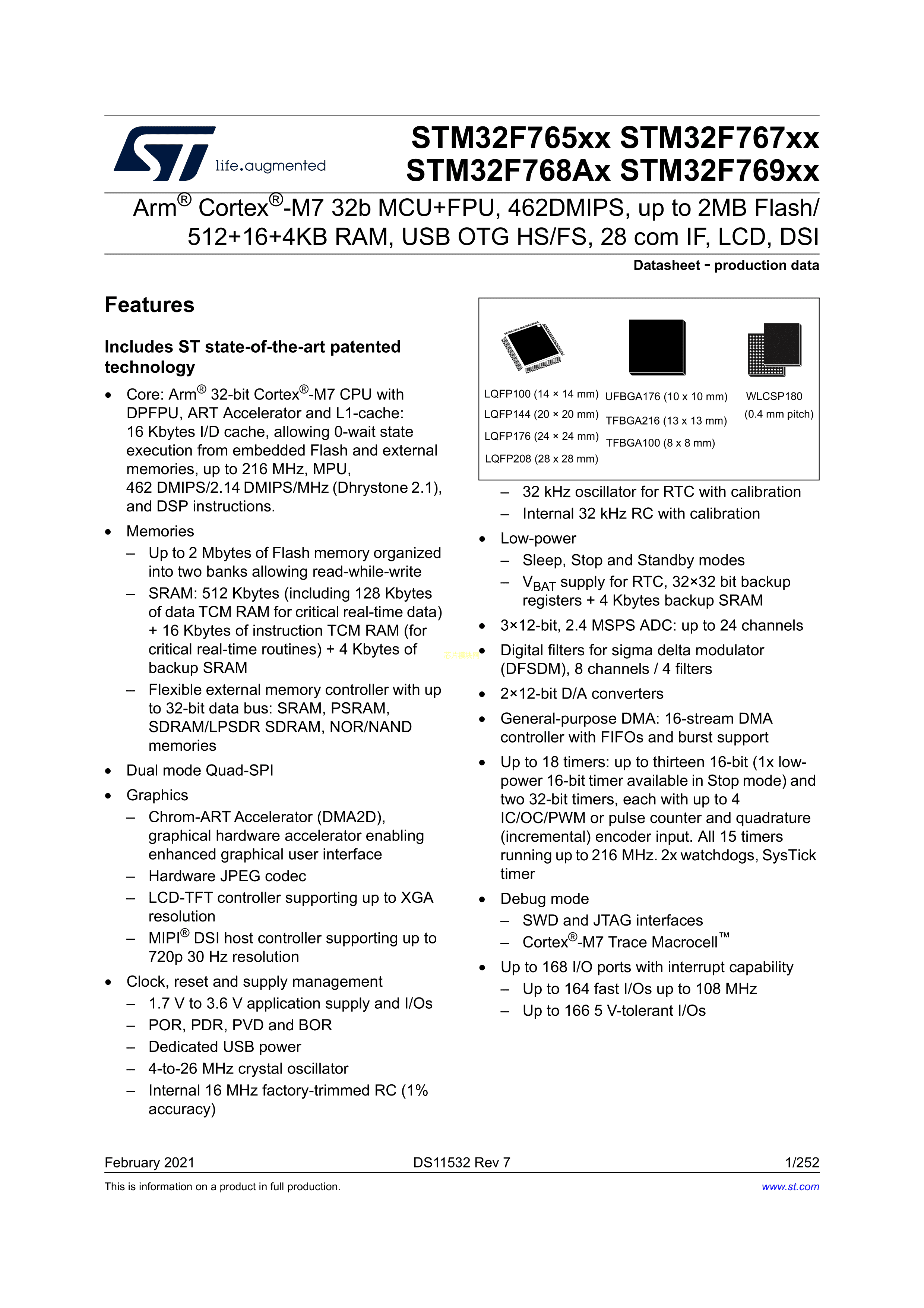 STM32F767VGT7数据手册LQFP-100(14x14)封装ST(意法半导体)PDF规格书,
